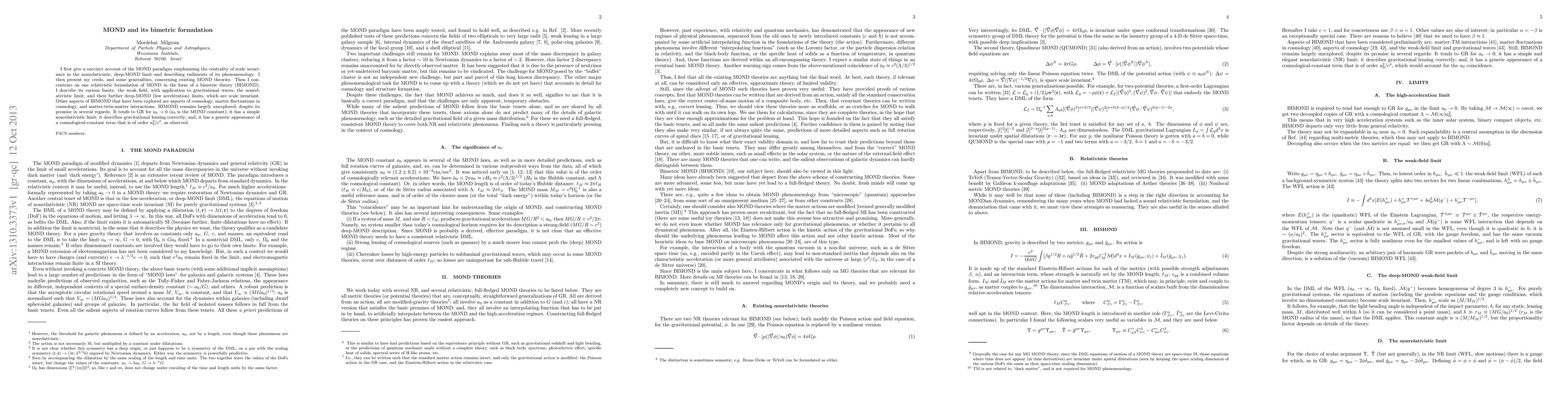 This paper discusses the MOND paradigm, emphasizing its scale invariance in the deep-MOND limit, and presents a relativistic bimetric formulation of MOND (BIMOND). BIMOND shows promise in various aspects, including correct gravitational lensing and cosmological implications, while remaining largely unexplored.