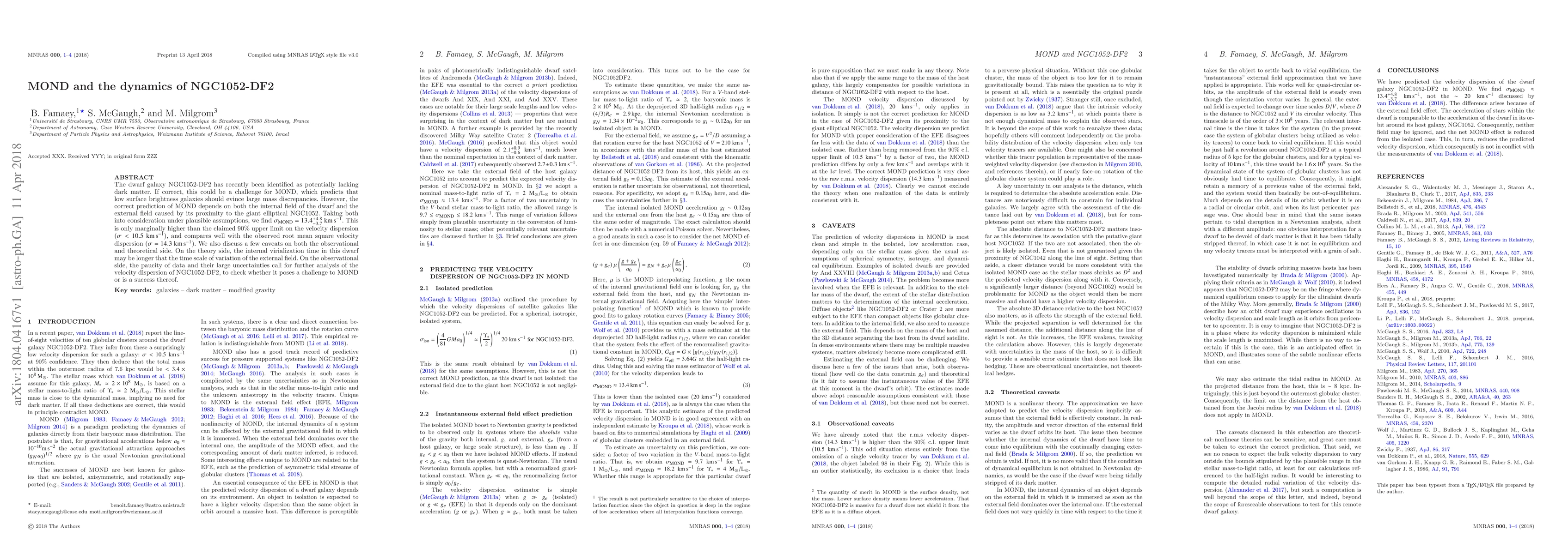 This paper examines whether the dwarf galaxy NGC1052-DF2, potentially devoid of dark matter, challenges Modified Newtonian Dynamics (MOND). The study finds that MOND's predictions align well with observed velocity dispersions, suggesting NGC1052-DF2 may support MOND, though further analysis is needed due to observational uncertainties and theoretical considerations.