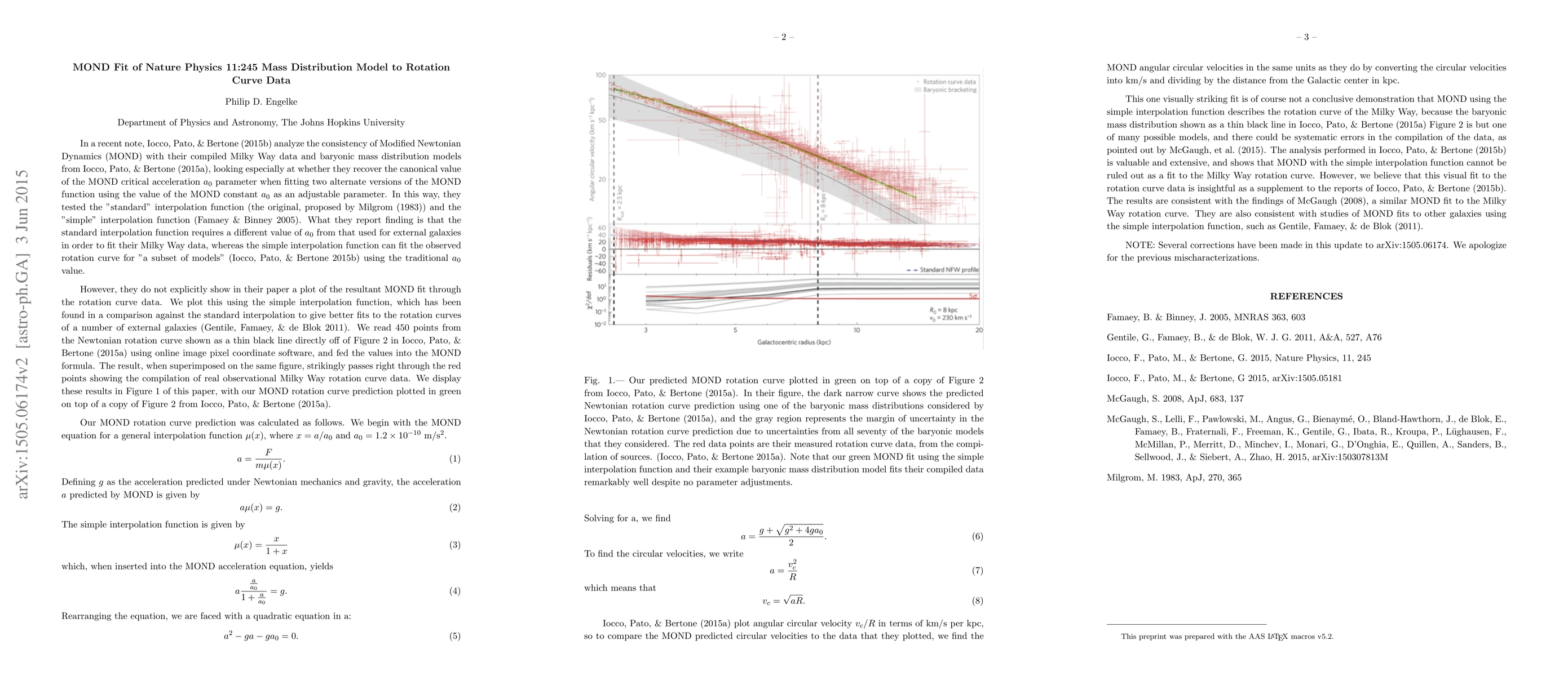 In arXiv:1505.05181, Iocco, Pato, and Bertone analyze the consistency of Modified Newtonian Dynamics (MOND) with their compiled Milky Way data and baryonic mass distribution models. We contribute to the discussion by feeding the baryonic mass distribution model shown as a black line in Figure 2 of their original paper, Nature Physics 11:245, into the MOND formula assuming the so-called simple interpolation function, and directly plotting these results on top of the compiled observational rotation curve data from their original paper. We find that the baryonic model using MOND with the simple interpolation function provides a striking fit to the rotation curve observational data with no parameter adjustments required. Our results are consistent with the findings of McGaugh (2008) as well as with studies of external galaxies.
