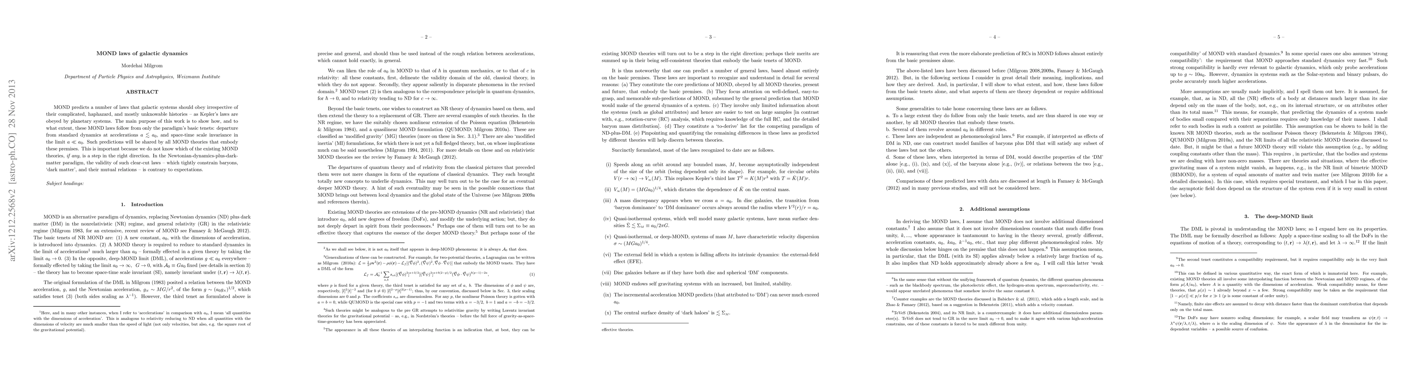 MOND predicts a number of laws that galactic systems should obey irrespective