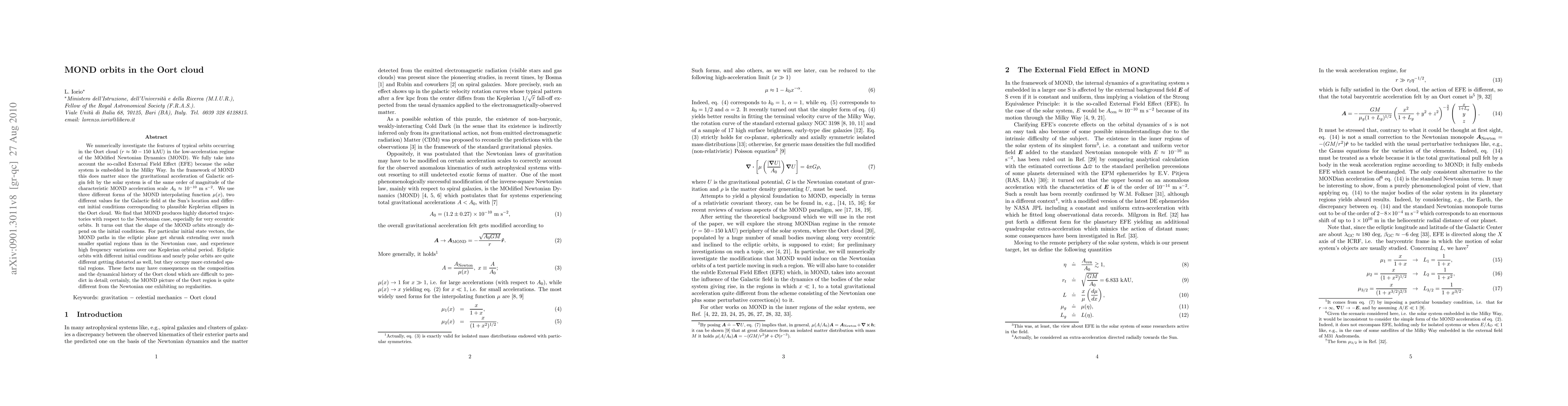 This study numerically explores orbits in the Oort cloud under MOND, considering the External Field Effect due to the Milky Way's gravity. It finds that MOND leads to highly distorted trajectories, especially for eccentric orbits, with orbit shapes significantly dependent on initial conditions. The results suggest potential implications for the Oort cloud's composition and history, which are challenging to forecast.