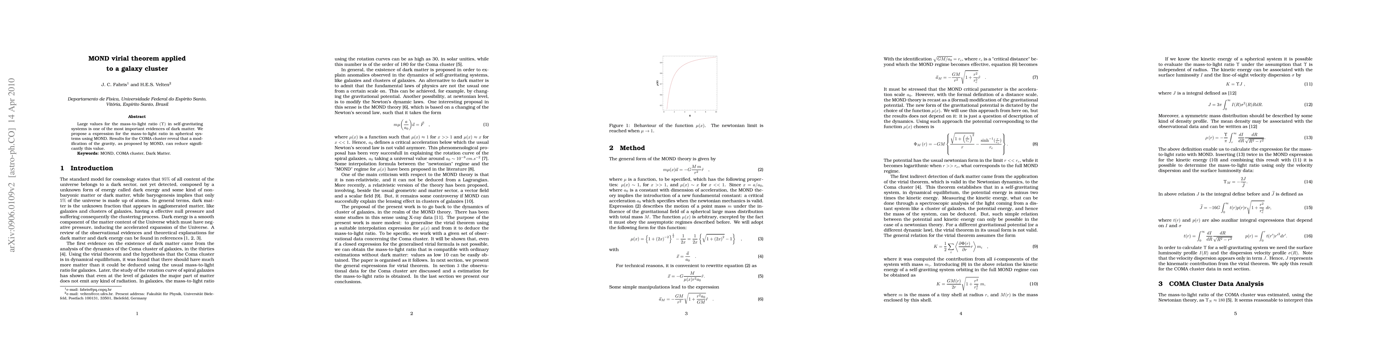 Researchers applied MOND to a galaxy cluster, finding that modified gravity can significantly reduce large mass-to-light ratio values, which are often attributed to dark matter.