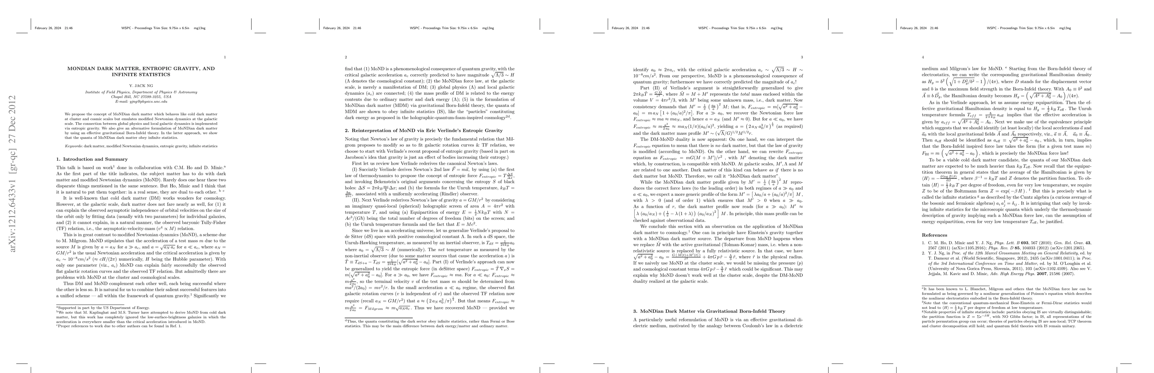 We propose the concept of MoNDian dark matter which behaves like cold dark matter at cluster and cosmic scales but emulates modified Newtonian dynamics at the galactic scale. The connection between global physics and local galactic dynamics is implemented via entropic gravity. We also give an alternative formulation of MoNDian dark matter by using an effective gravitational Born-Infeld theory. In the latter approach, we show that the quanta of MoNDian dark matter obey infinite statistics.