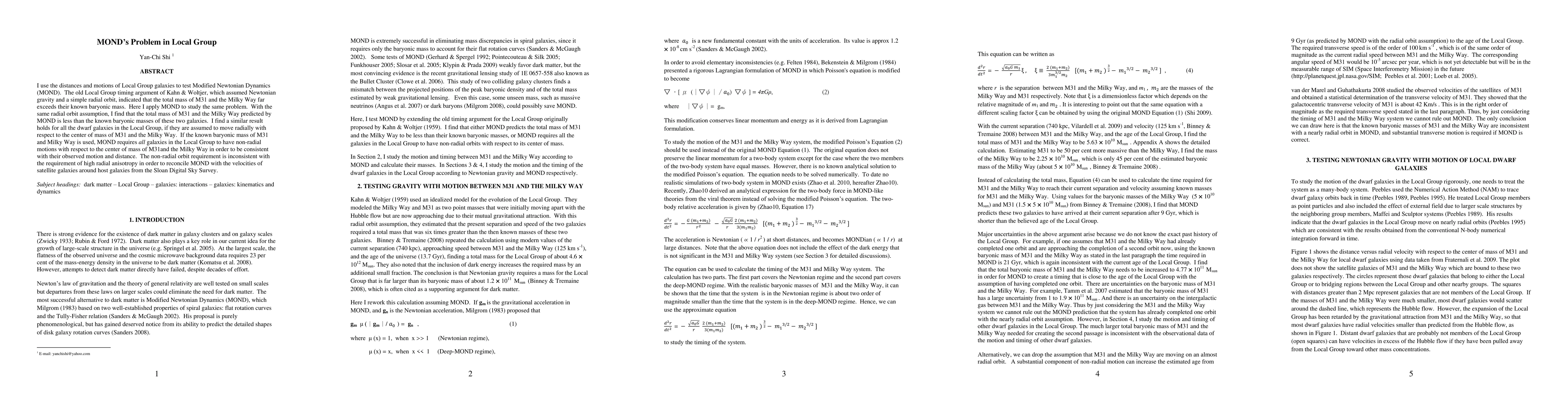 This paper tests Modified Newtonian Dynamics (MOND) using Local Group galaxy distances and motions, finding that MOND predicts lower total masses for M31 and the Milky Way than their known baryonic masses, unless non-radial orbits are assumed, which conflicts with MOND's requirement for high radial anisotropy.