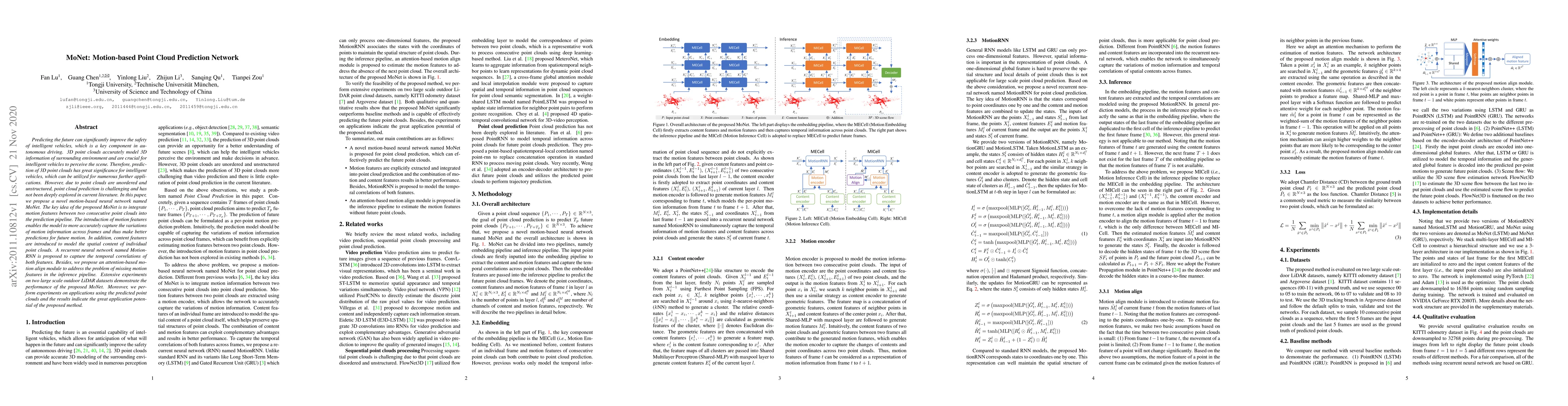 MoNet is a novel motion-based neural network for predicting future 3D point clouds, crucial for autonomous vehicle safety. It integrates motion and content features to capture temporal correlations and variations, demonstrating significant potential for applications in intelligent driving.
