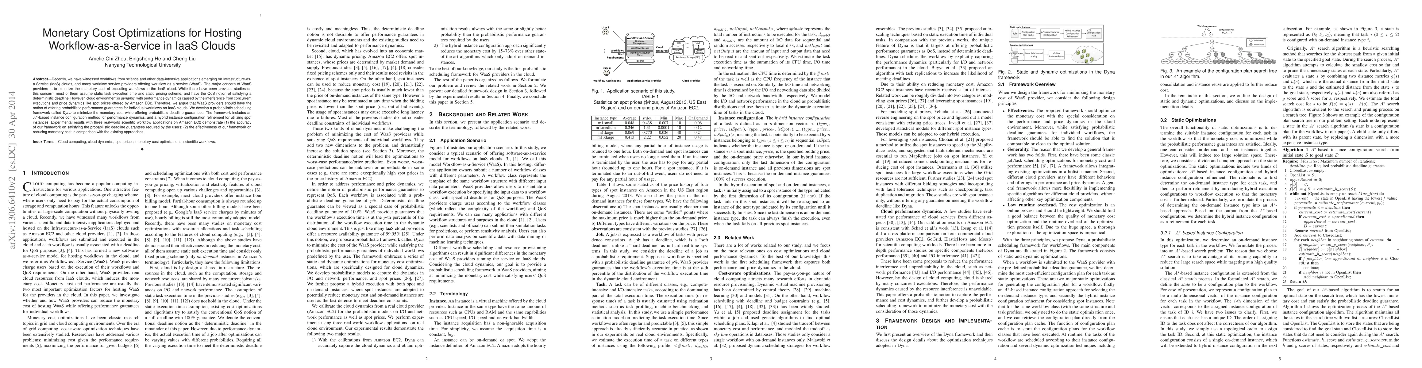 The paper proposes a probabilistic scheduling framework called Dyna to minimize monetary costs for executing workflows on IaaS clouds, addressing dynamic performance and pricing variations. Experimental results show Dyna effectively satisfies probabilistic deadlines and reduces costs compared to existing methods.