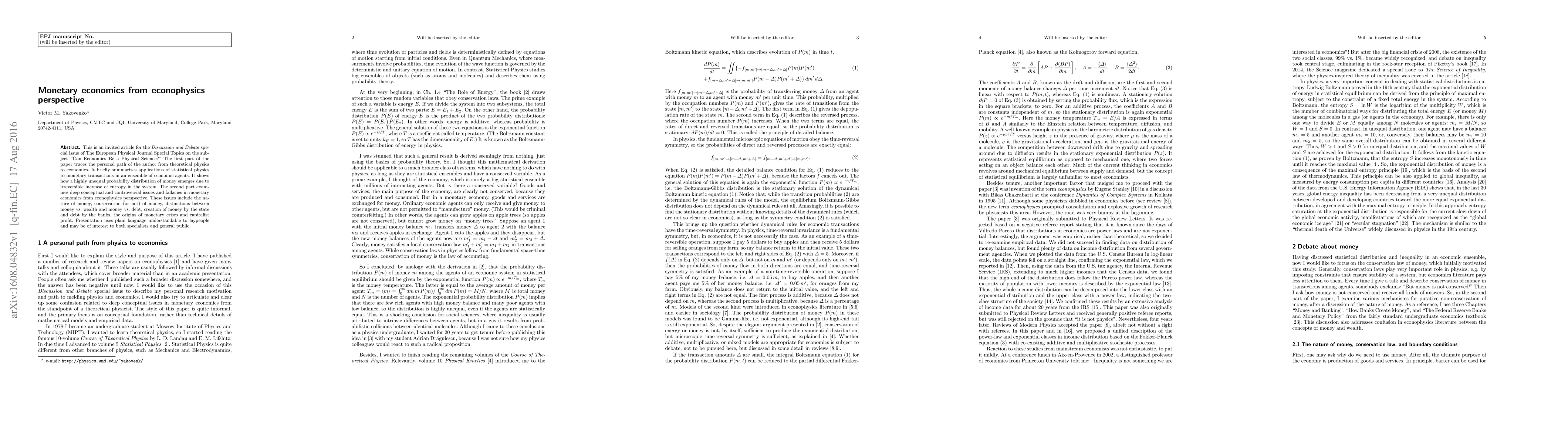 This is an invited article for the Discussion and Debate special issue of The European Physical Journal Special Topics on the subject "Can Economics Be a Physical Science?" The first part of the paper traces the personal path of the author from theoretical physics to economics. It briefly summarizes applications of statistical physics to monetary transactions in an ensemble of economic agents. It shows how a highly unequal probability distribution of money emerges due to irreversible increase of entropy in the system. The second part examines deep conceptual and controversial issues and fallacies in monetary economics from econophysics perspective. These issues include the nature of money, conservation (or not) of money, distinctions between money vs. wealth and money vs. debt, creation of money by the state and debt by the banks, the origins of monetary crises and capitalist profit. Presentation uses plain language understandable to laypeople and may be of interest to both specialists and general public.