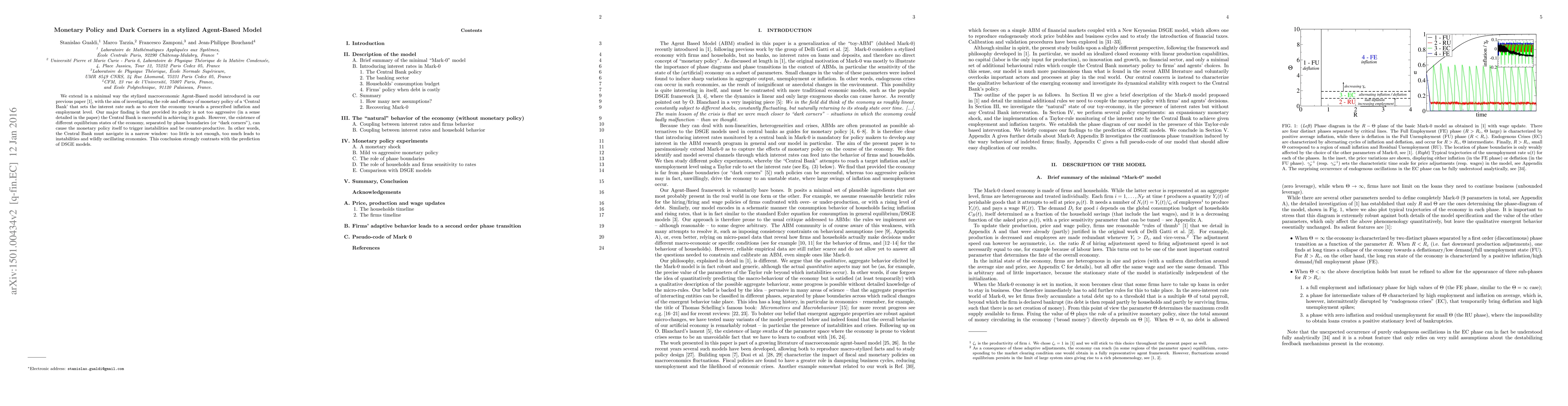 We extend in a minimal way the stylized model introduced in in "Tipping Points in Macroeconomic Agent Based Models" [JEDC 50, 29-61 (2015)], with the aim of investigating the role and efficacy of monetary policy of a `Central Bank' that sets the interest rate such as to steer the economy towards a prescribed inflation and employment level. Our major finding is that provided its policy is not too aggressive (in a sense detailed in the paper) the Central Bank is successful in achieving its goals. However, the existence of different equilibrium states of the economy, separated by phase boundaries (or "dark corners"), can cause the monetary policy itself to trigger instabilities and be counter-productive. In other words, the Central Bank must navigate in a narrow window: too little is not enough, too much leads to instabilities and wildly oscillating economies. This conclusion strongly contrasts with the prediction of DSGE models.