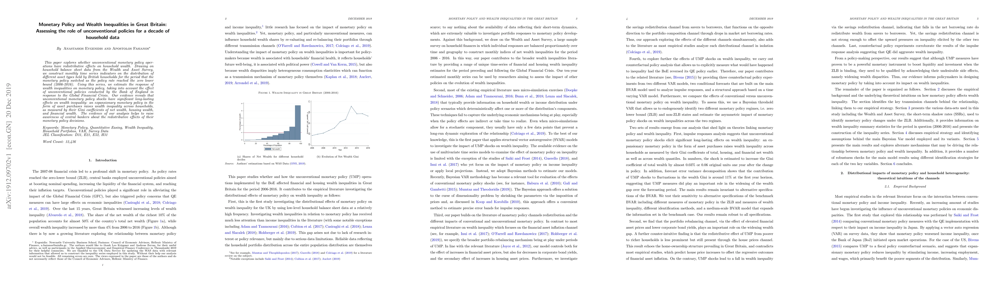 This paper investigates the redistributive effects of unconventional monetary policies on household wealth in Great Britain from 2006-2016. It finds that asset purchase programs significantly increase wealth inequality, highlighting the need for central bankers to consider these effects in their policy decisions.