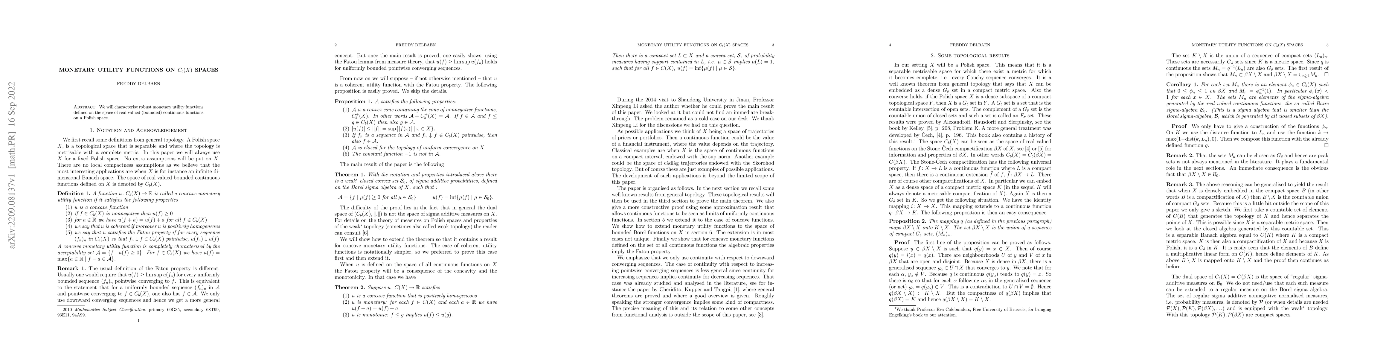 Summary: This paper characterizes robust monetary utility functions on the space of bounded continuous functions over a Polish space, providing a detailed analysis of their properties and implications. The focus is on understanding how these utility functions can be robustly defined within this mathematical framework.