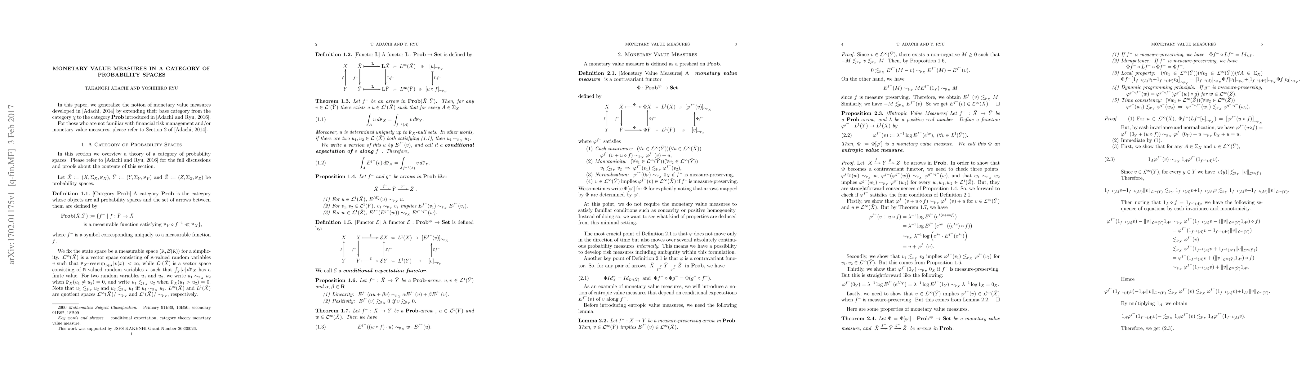 We generalize the notion of monetary value measures developed with category theory in [Adachi, 2014] by extending their base category from the category \c{hi} to the category of probability spaces Prob introduced in [Adachi and Ryu, 2016].