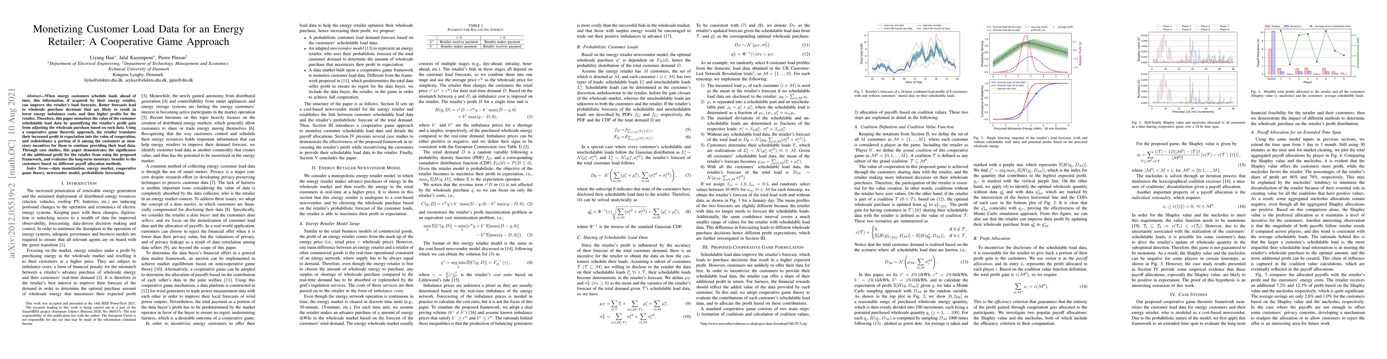 This research paper explores how energy retailers can profit from customer load data through a cooperative game approach, and redistributes excess profits to customers as incentives.