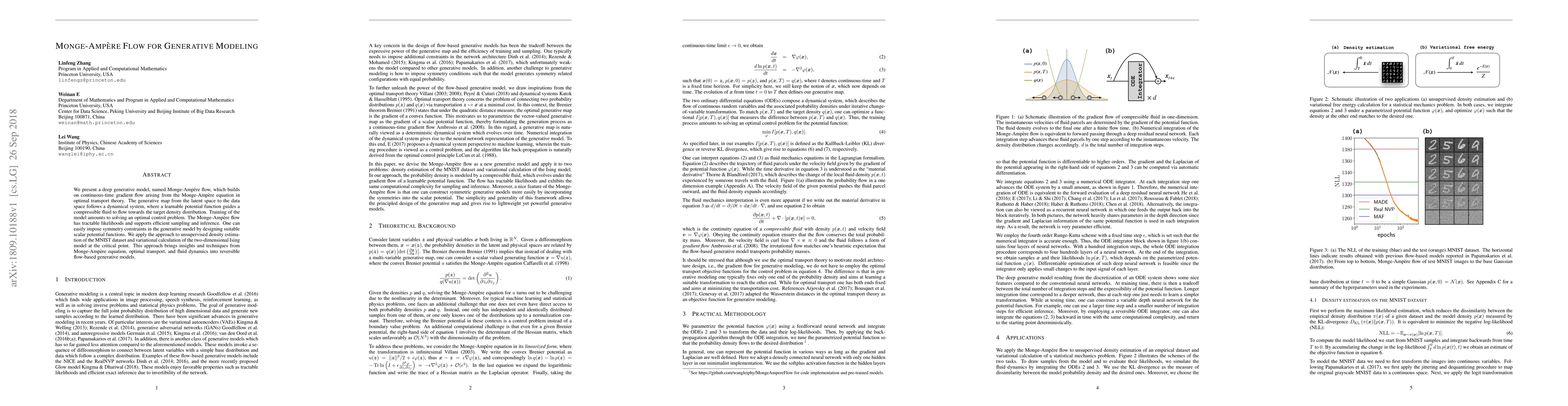 This paper introduces a novel deep generative model called Monge-Ampère flow, which leverages continuous-time gradient flow from the Monge-Ampère equation in optimal transport theory. The model efficiently samples and infers by solving an optimal control problem, and it applies to unsupervised density estimation and variational calculations.