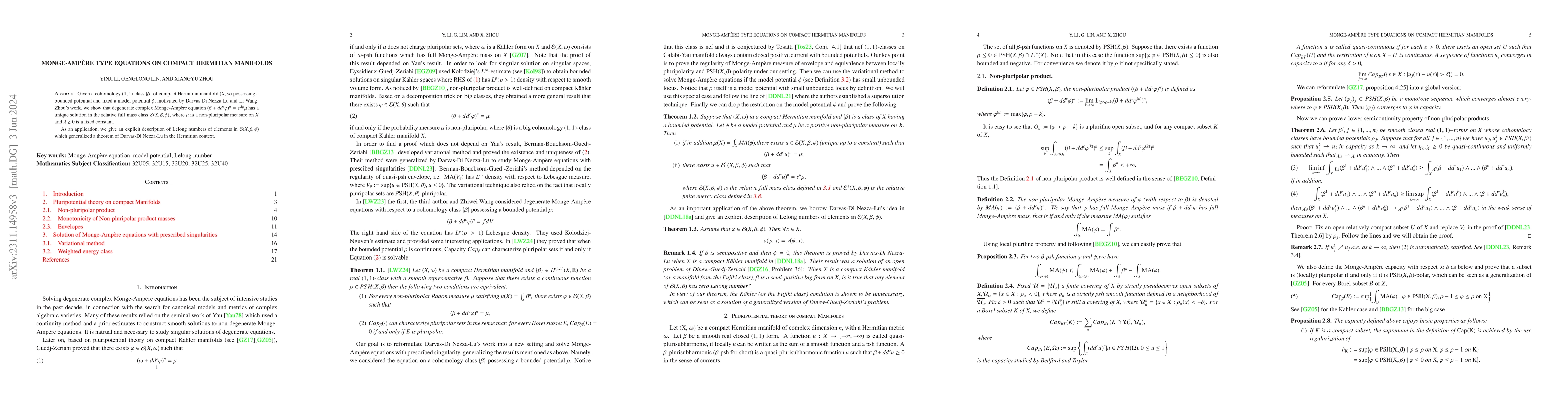 A combination of analytical and numerical methods were used to study complex Monge-Ampere equations on compact Hermitian manifolds.