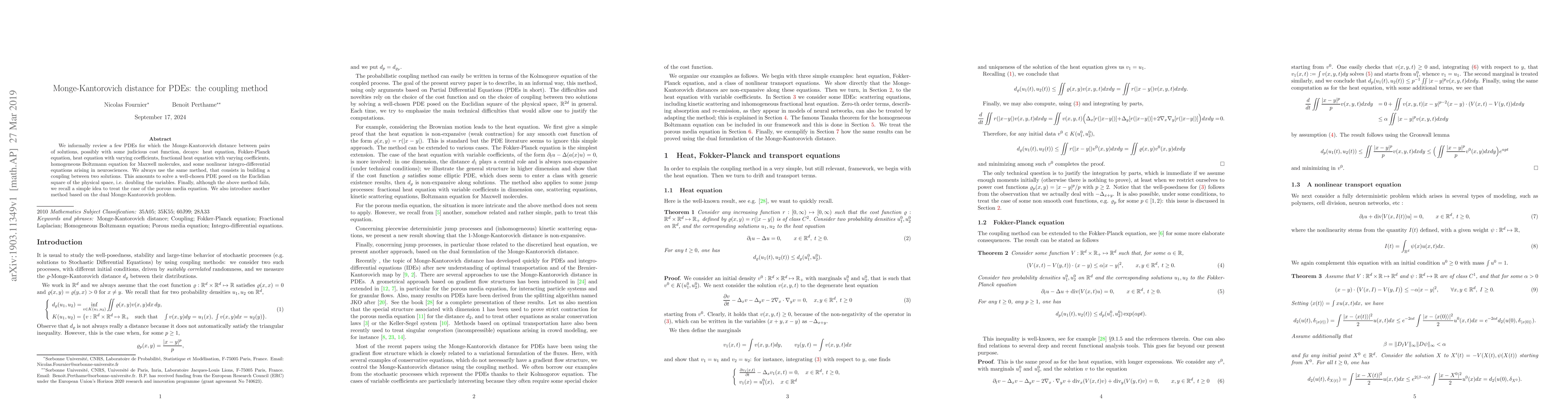 This paper reviews the application of the Monge-Kantorovich distance for analyzing the decay of solutions to various PDEs, employing a coupling method to establish connections between solutions. The method is illustrated through several equations, but a different approach is suggested for the porous media equation.
