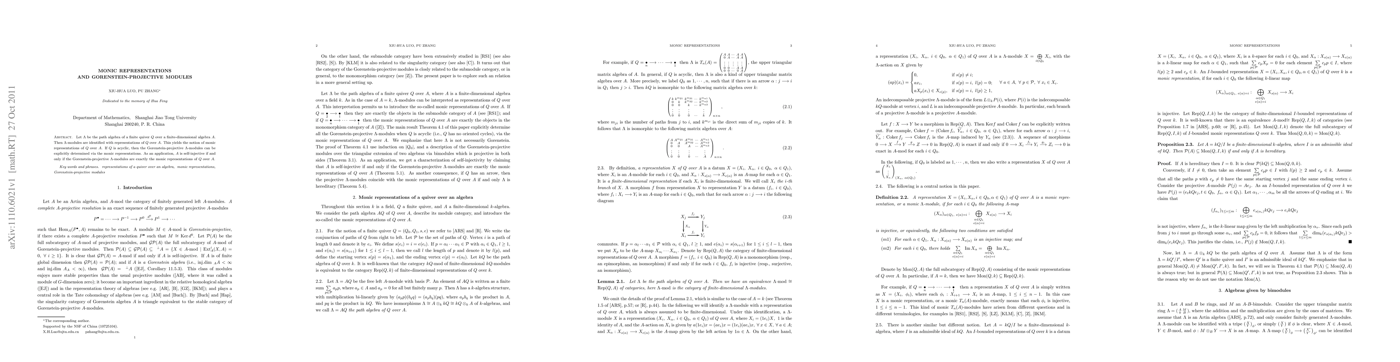 Let $\Lambda$ be the path algebra of a finite quiver $Q$ over a finite-dimensional algebra $A$. Then $\Lambda$-modules are identified with representations of $Q$ over $A$. This yields the notion of monic representations of $Q$ over $A$. If $Q$ is acyclic, then the Gorenstein-projective $\m$-modules can be explicitly determined via the monic representations. As an application, $A$ is self-injective if and only if the Gorenstein-projective $\m$-modules are exactly the monic representations of $Q$ over $A$.