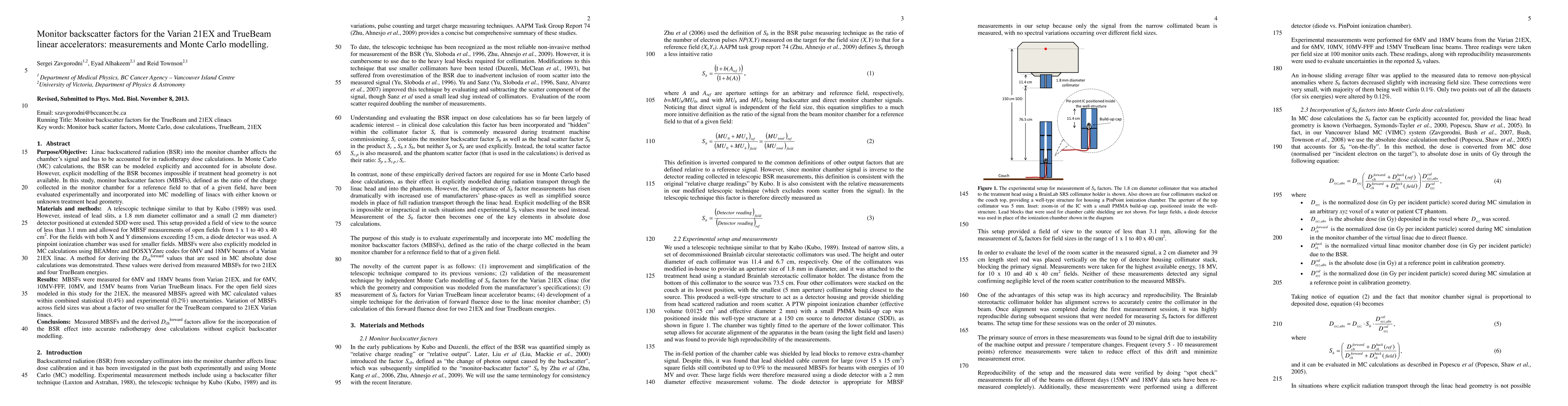Researchers measured monitor backscatter factors for Varian 21EX and TrueBeam linear accelerators to improve radiotherapy dose calculations, finding that the effect is significantly less pronounced in TrueBeam machines.