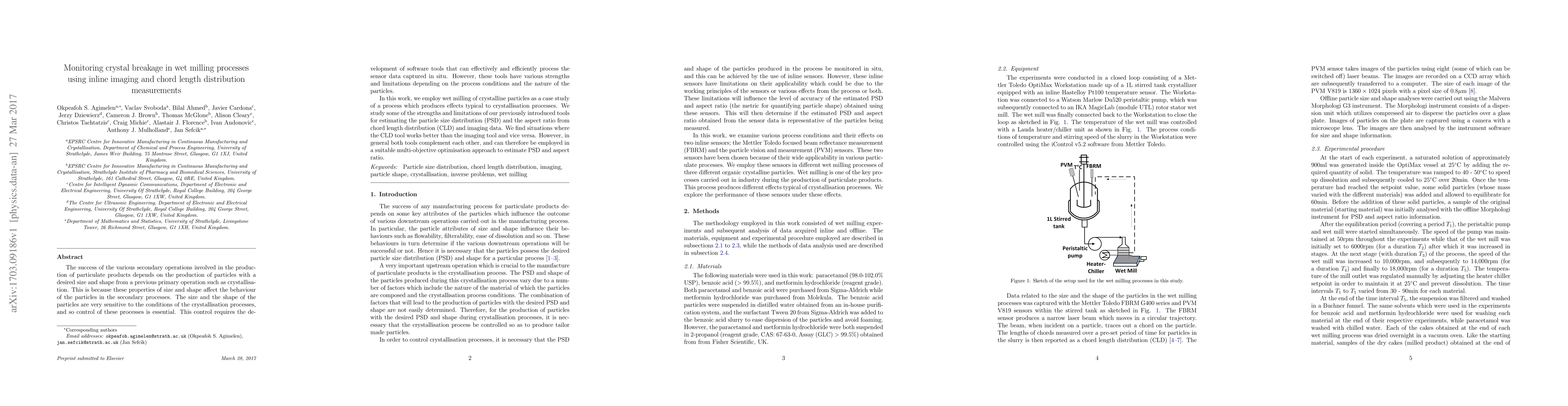 This paper investigates the use of inline imaging and chord length distribution measurements to monitor crystal breakage during wet milling processes. The study finds that both methods have strengths and limitations, but they complement each other, allowing for a multi-objective optimization approach to estimate particle size distribution and aspect ratio effectively.