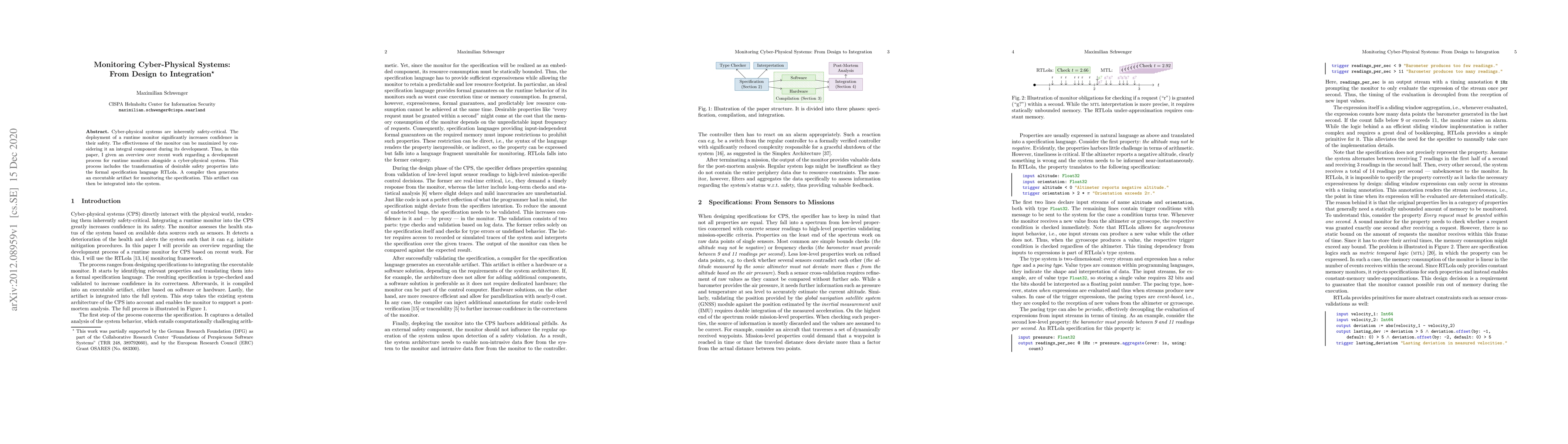 Cyber-physical systems are inherently safety-critical. The deployment of a runtime monitor significantly increases confidence in their safety. The effectiveness of the monitor can be maximized by considering it an integral component during its development. Thus, in this paper, I given an overview over recent work regarding a development process for runtime monitors alongside a cyber-physical system. This process includes the transformation of desirable safety properties into the formal specification language RTLola. A compiler then generates an executable artifact for monitoring the specification. This artifact can then be integrated into the system.