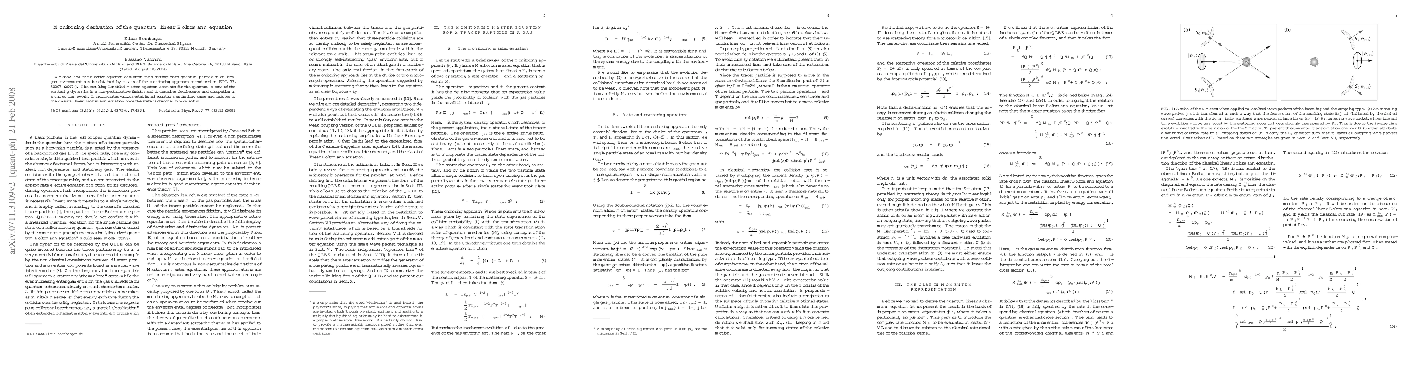 We show how the effective equation of motion for a distinguished quantum particle in an ideal gas environment can be obtained by means of the monitoring approach introduced in [EPL 77, 50007 (2007)]. The resulting Lindblad master equation accounts for the quantum effects of the scattering dynamics in a non-perturbative fashion and it describes decoherence and dissipation in a unified framework. It incorporates various established equations as limiting cases and reduces to the classical linear Boltzmann equation once the state is diagonal in momentum.