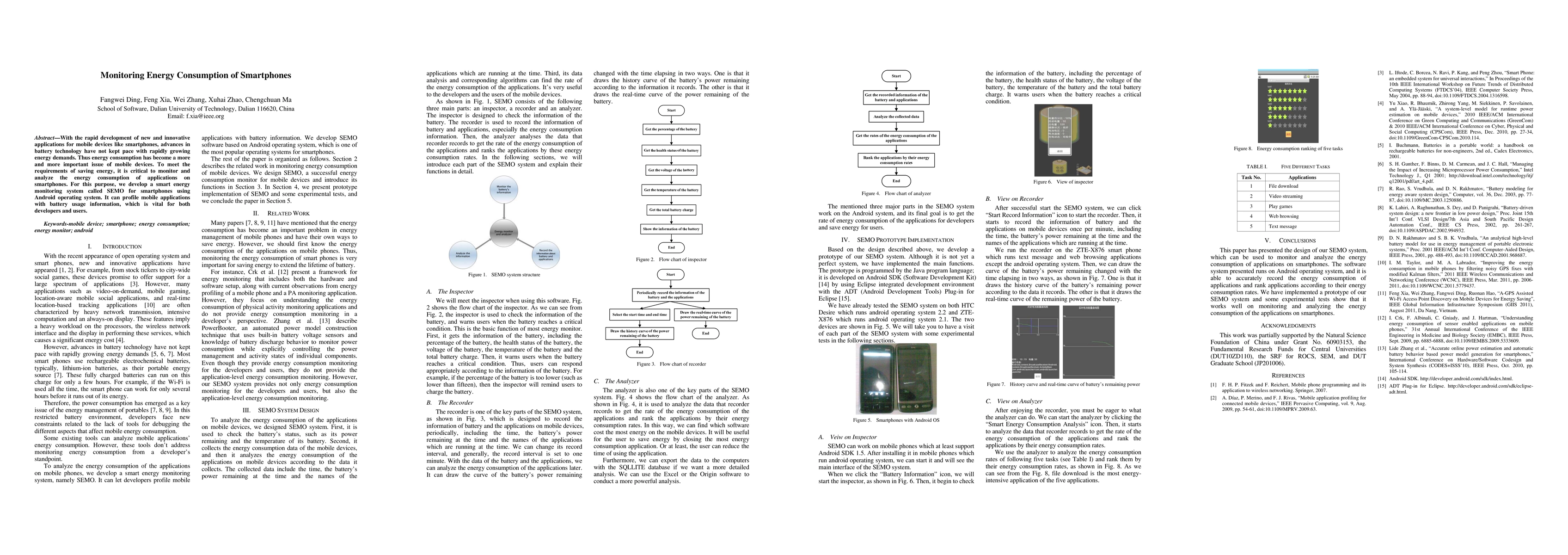 This paper introduces a smartphone energy monitoring system called SEMO that profiles mobile applications with battery usage information to help developers and users save energy. It provides vital insights for optimizing energy consumption in smartphones.