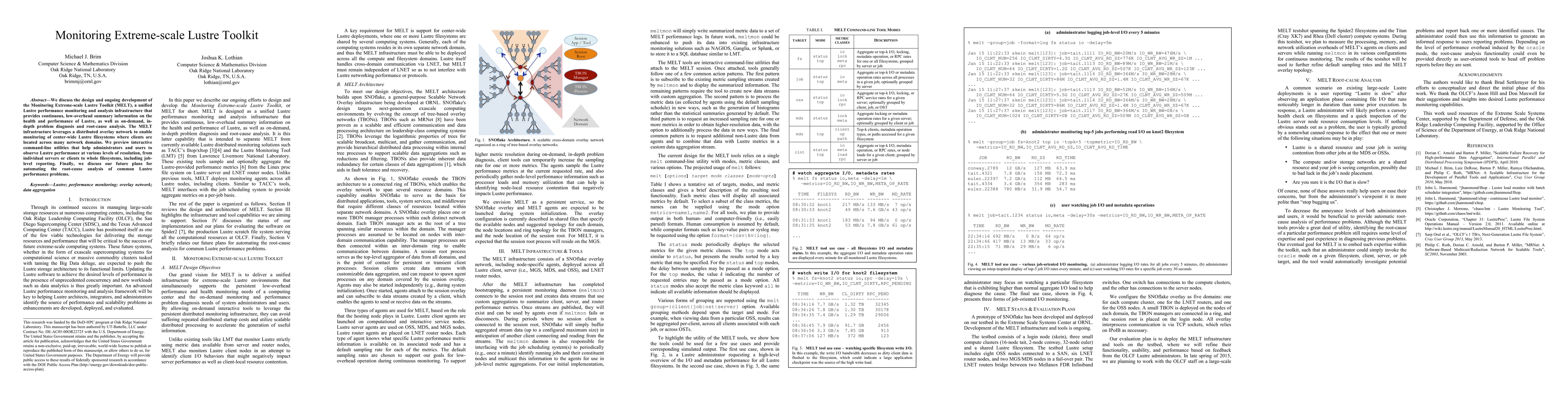 The Monitoring Extreme-scale Lustre Toolkit (MELT) is a unified infrastructure for continuous, low-overhead monitoring and analysis of Lustre filesystem performance, offering both summary information and in-depth problem diagnosis. The MELT infrastructure uses a distributed overlay network to monitor large-scale Lustre deployments across multiple network domains.
