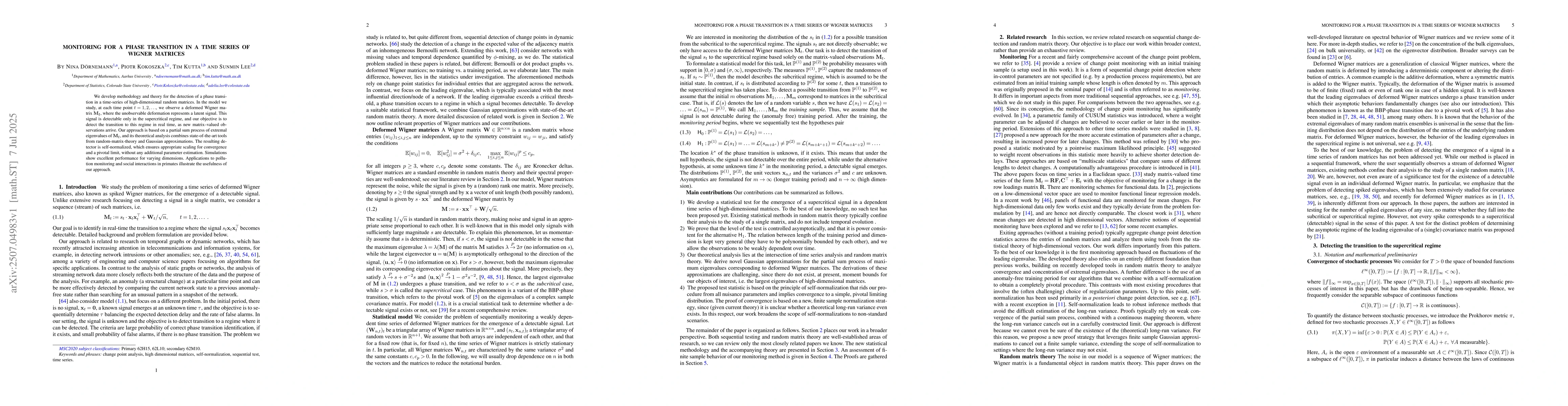 We develop methodology and theory for the detection of a phase transition in a time-series of high-dimensional random matrices. In the model we study, at each time point \( t = 1,2,\ldots \), we observe a deformed Wigner matrix \( \mathbf{M}_t \), where the unobservable deformation represents a latent signal. This signal is detectable only in the supercritical regime, and our objective is to detect the transition to this regime in real time, as new matrix--valued observations arrive. Our approach is based on a partial sum process of extremal eigenvalues of $\mathbf{M}_t$, and its theoretical analysis combines state-of-the-art tools from random-matrix-theory and Gaussian approximations. The resulting detector is self-normalized, which ensures appropriate scaling for convergence and a pivotal limit, without any additional parameter estimation. Simulations show excellent performance for varying dimensions. Applications to pollution monitoring and social interactions in primates illustrate the usefulness of our approach.
