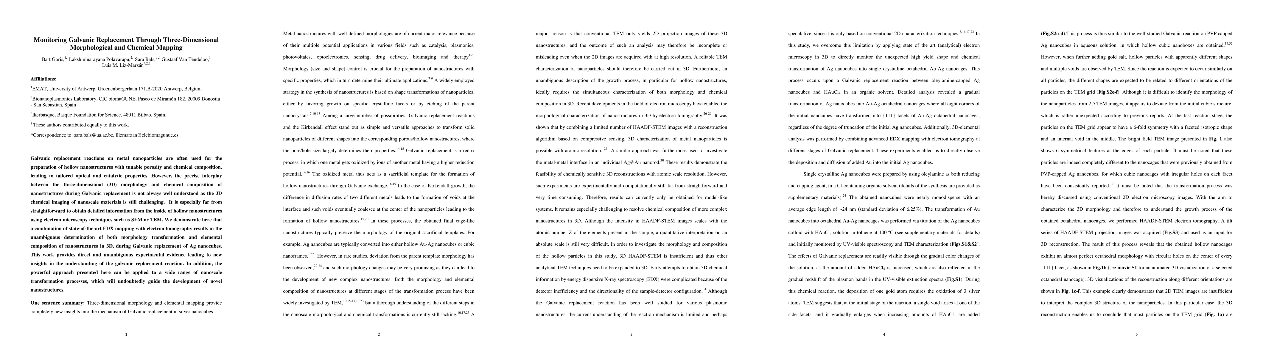 This paper demonstrates the use of advanced electron tomography combined with EDX mapping to monitor the three-dimensional morphological and chemical changes during the galvanic replacement of Ag nanocubes, providing detailed insights into the transformation process and paving the way for the development of new nanostructures.