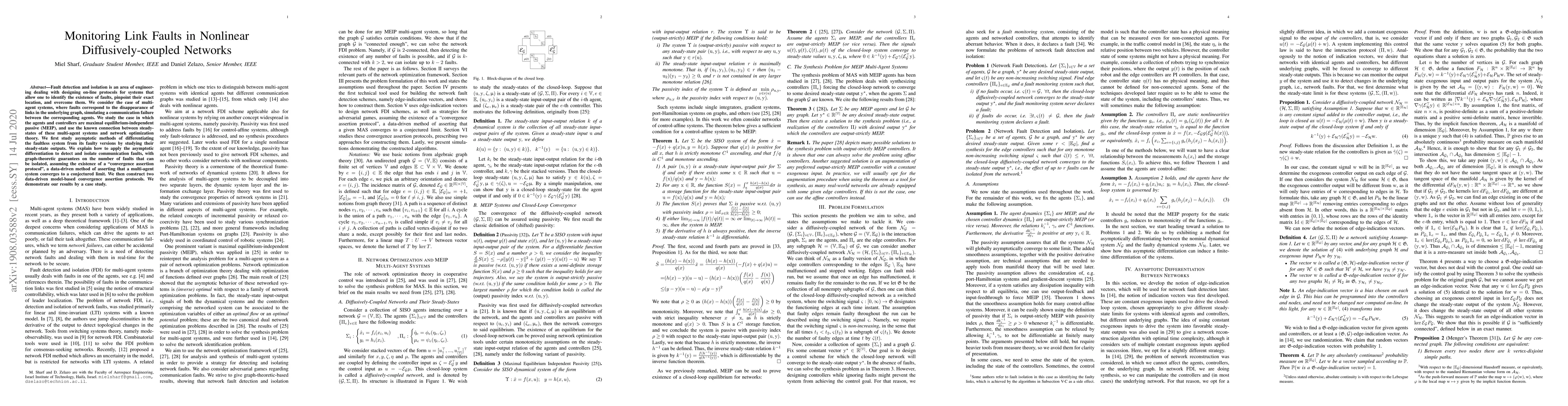 This paper develops online protocols for detecting and isolating link faults in nonlinear diffusively-coupled multi-agent systems, leveraging network optimization theory and asymptotic differentiation. It constructs data-driven convergence assertion protocols to ensure fault detection and isolation, validated through a case study.