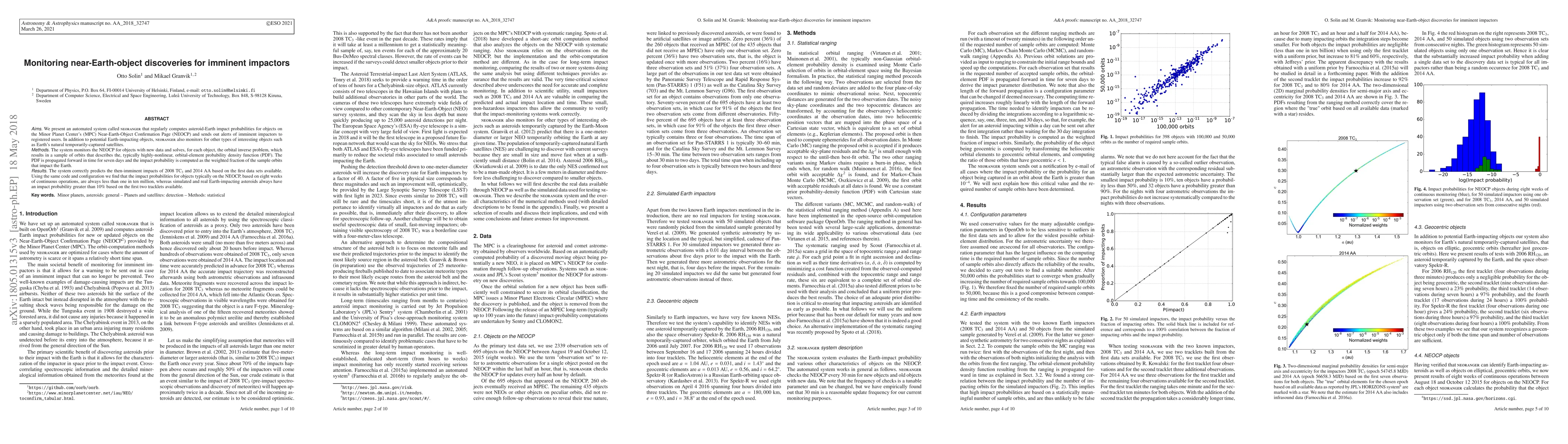 NEORANGER is an automated system that calculates asteroid-Earth impact probabilities and sends alerts for imminent impactors. It monitors the Minor Planet Center's Near-Earth-Object Confirmation Page, solving the orbital inverse problem to compute impact probabilities over 7 days, and successfully predicted the impacts of 2008 TC3 and 2014 AA.