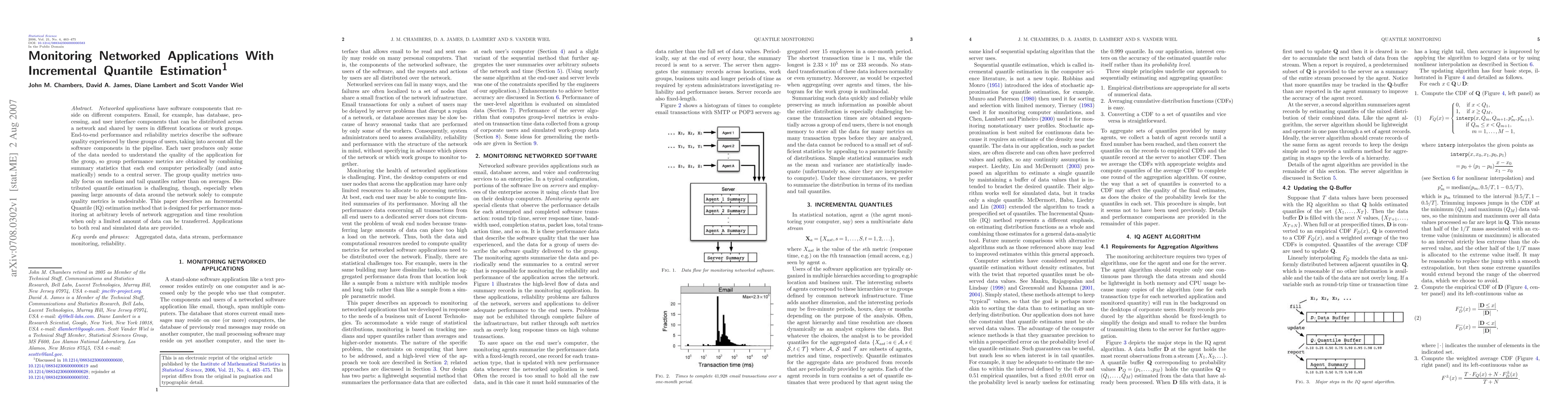 This paper proposes an Incremental Quantile estimation method to monitor networked applications with limited data transfer, focusing on performance metrics such as medians and tail quantiles for group quality evaluation.