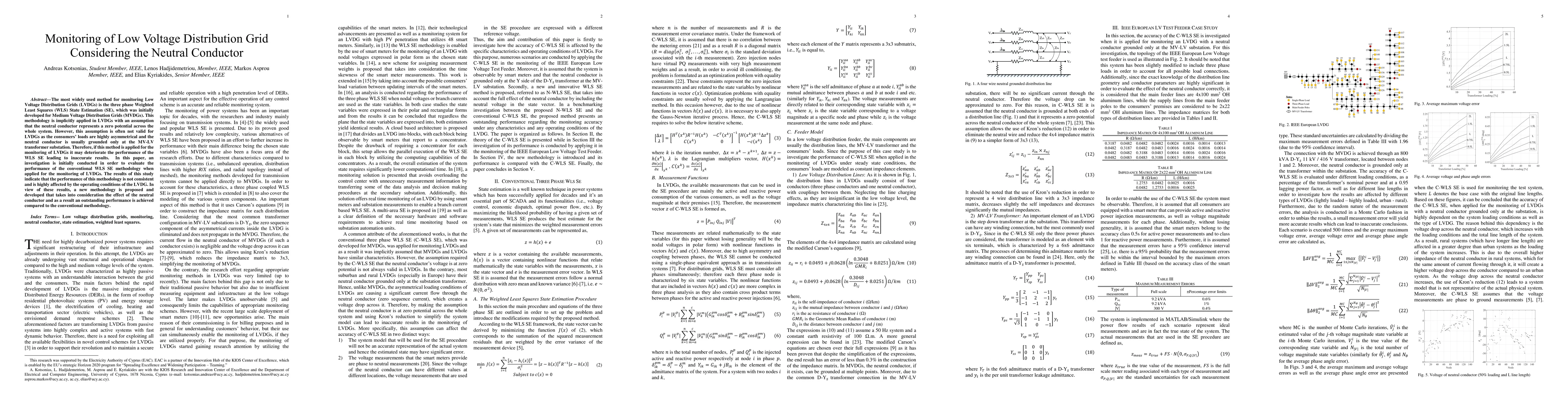 The most widely used method for monitoring Low Voltage Distribution Grids (LVDGs) is the three phase Weighted Least Squares (WLS) State Estimation (SE), which was initially developed for Medium Voltage Distribution Grids (MVDGs). This methodology is implicitly applied in LVDGs with an assumption that the neutral conductor represents a zero potential across the whole system. However, this assumption is often not valid for LVDGs as the consumers loads are highly asymmetrical and the neutral conductor is usually grounded only at the MV-LV transformer substation. Therefore, if this method is applied for the monitoring of LVDGs it may deteriorate the performance of the WLS SE leading to inaccurate results. In this paper, an investigation is initially conducted in order to evaluate the performance of the conventional WLS SE methodology when applied for the monitoring of LVDGs. The results of this study indicate that the performance of this methodology is not consistent and is highly affected by the operating conditions of the LVDG. In view of these results, a new methodology is proposed and developed that takes into consideration the effect of the neutral conductor and as a result an outstanding performance is achieved compared to the conventional methodology.