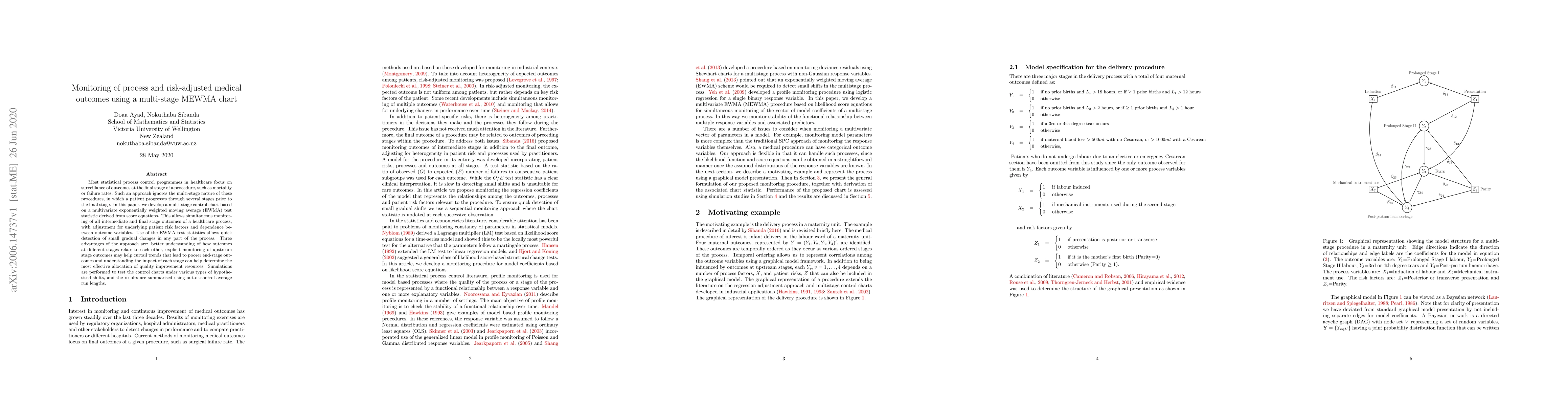 Researchers developed a multi-stage control chart to monitor healthcare process outcomes across stages, allowing for early detection of changes and adjustment for patient risk factors.