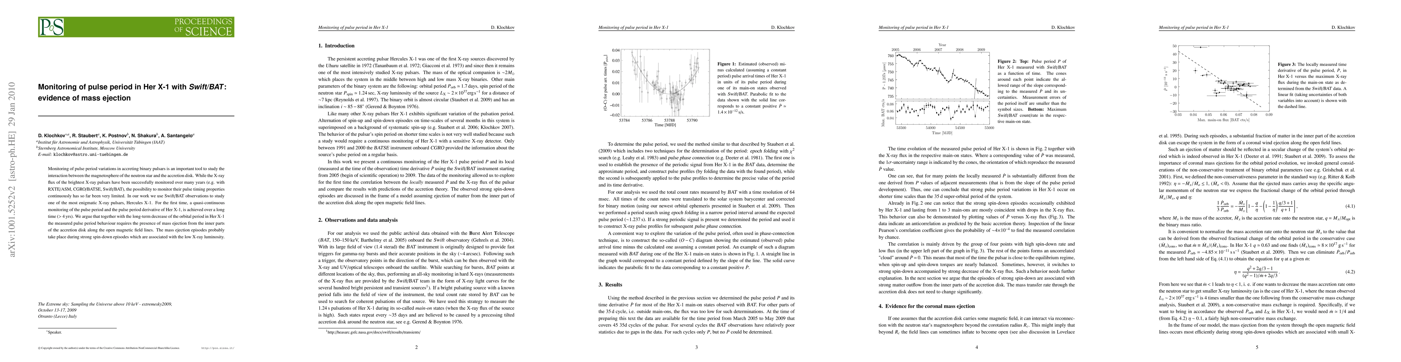 Researchers used Swift/BAT to monitor pulse period variations in Hercules X-1, a binary pulsar, for over 4 years, finding evidence of mass ejection from the accretion disk that may be linked to spin-down episodes and low X-ray luminosity.