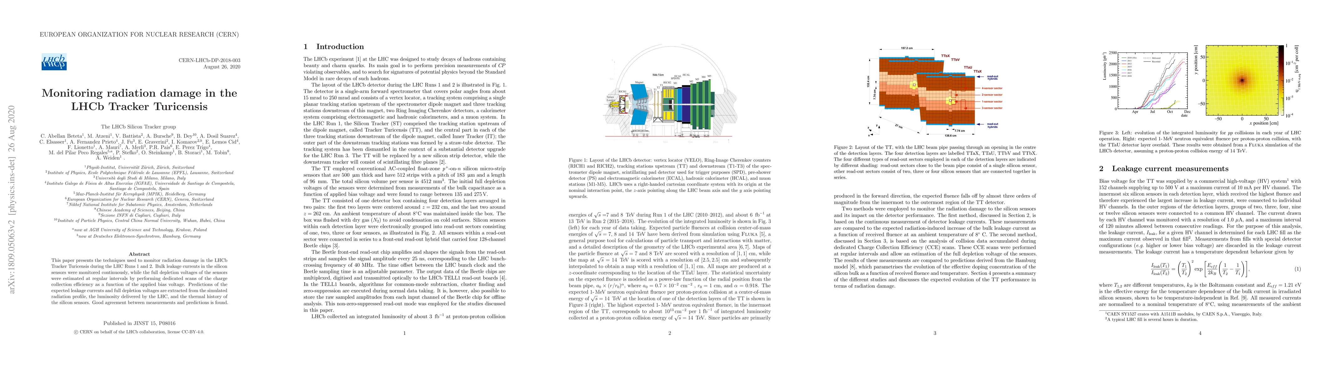 The LHCb Tracker Turicensis radiation damage was monitored during LHC Runs 1 and 2 using continuous bulk leakage current tracking and periodic full depletion voltage assessments. Measurements aligned well with simulated radiation profile, luminosity, and sensor thermal history predictions.