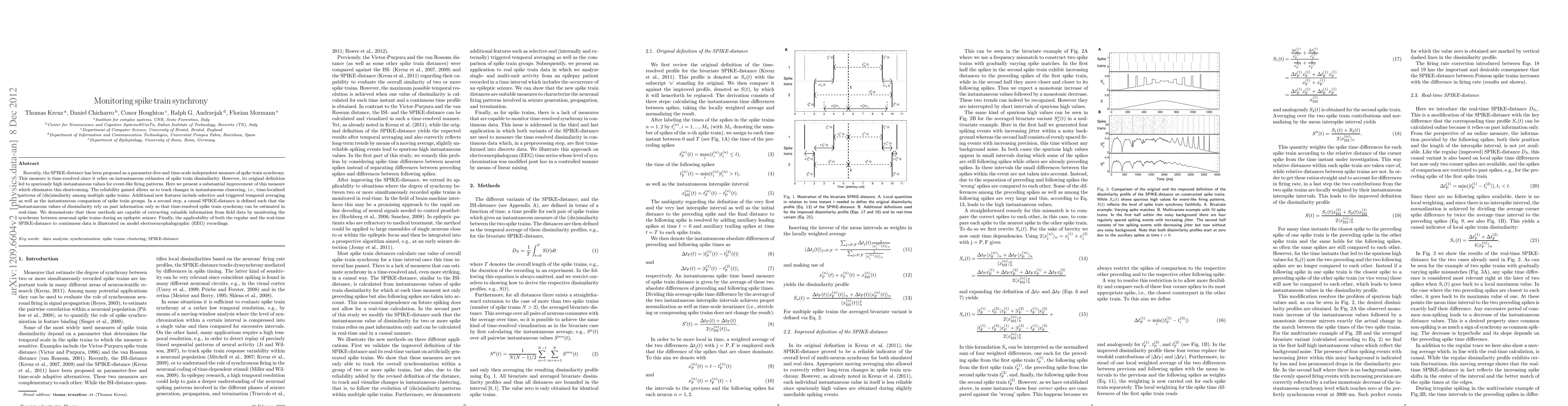 This paper improves the SPIKE-distance measure to accurately track spike train synchrony without spurious high values, enabling real-time monitoring of neuronal firing patterns. It demonstrates the method's effectiveness in analyzing epileptic seizure data and model EEG recordings.