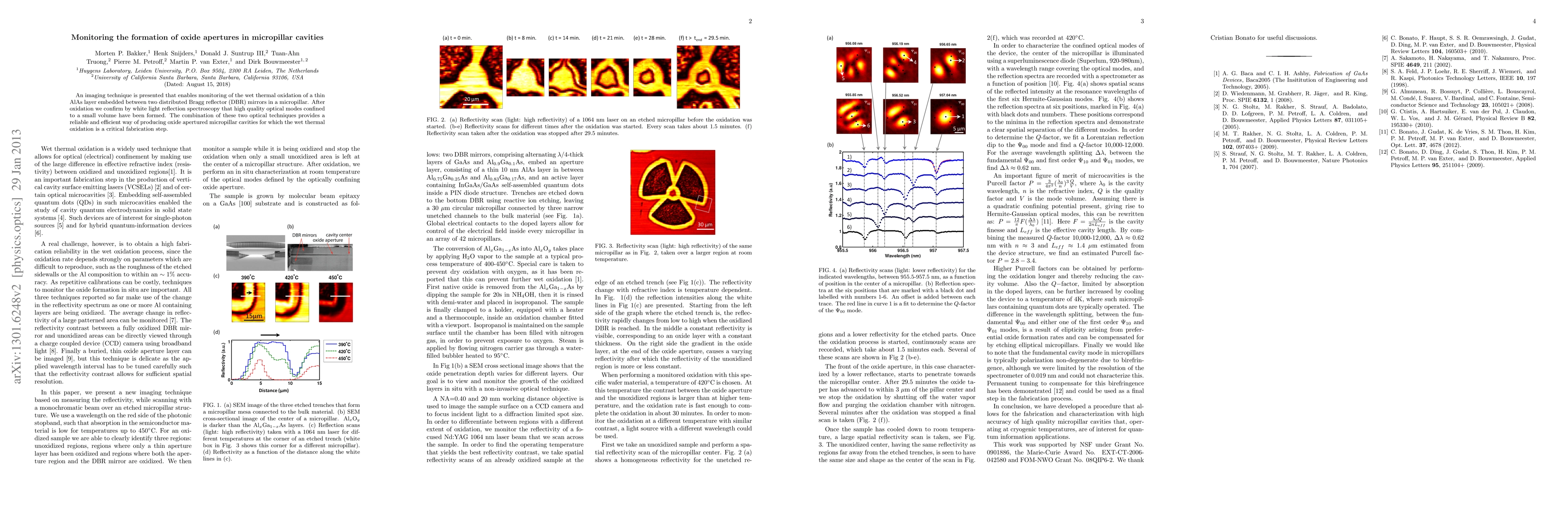This paper introduces an imaging technique to monitor the wet thermal oxidation of AlAs in micropillar cavities, confirming the formation of high-quality optical modes through white light reflection spectroscopy, thus enabling efficient production of oxide apertured micropillar cavities.