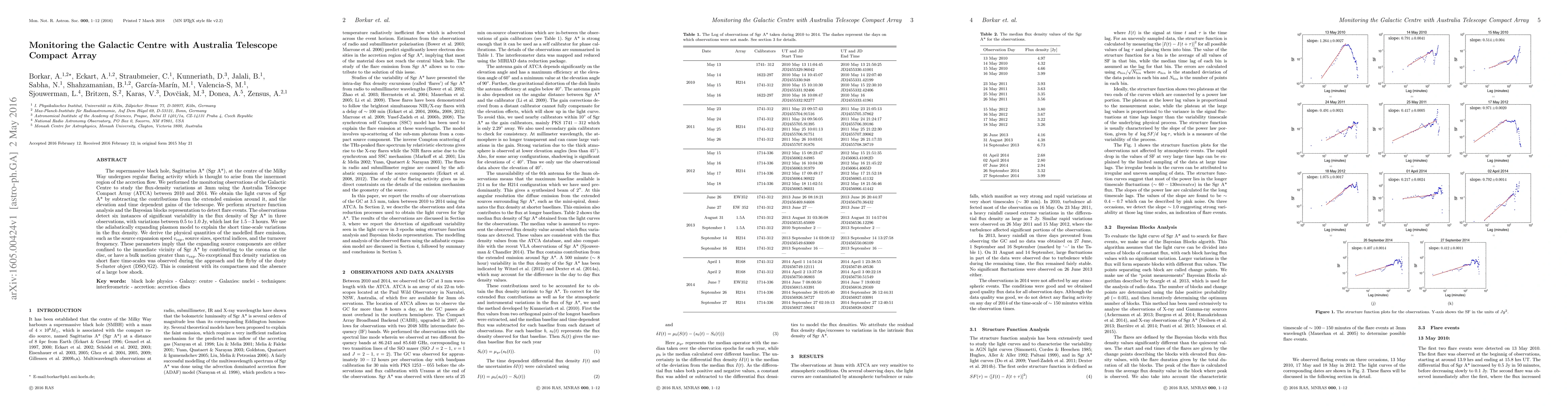 Researchers used the Australia Telescope Compact Array to monitor the Galactic Centre's supermassive black hole Sgr A*, detecting six instances of significant variability in its flux density over three observations, with variations lasting 1.5-3 hours.