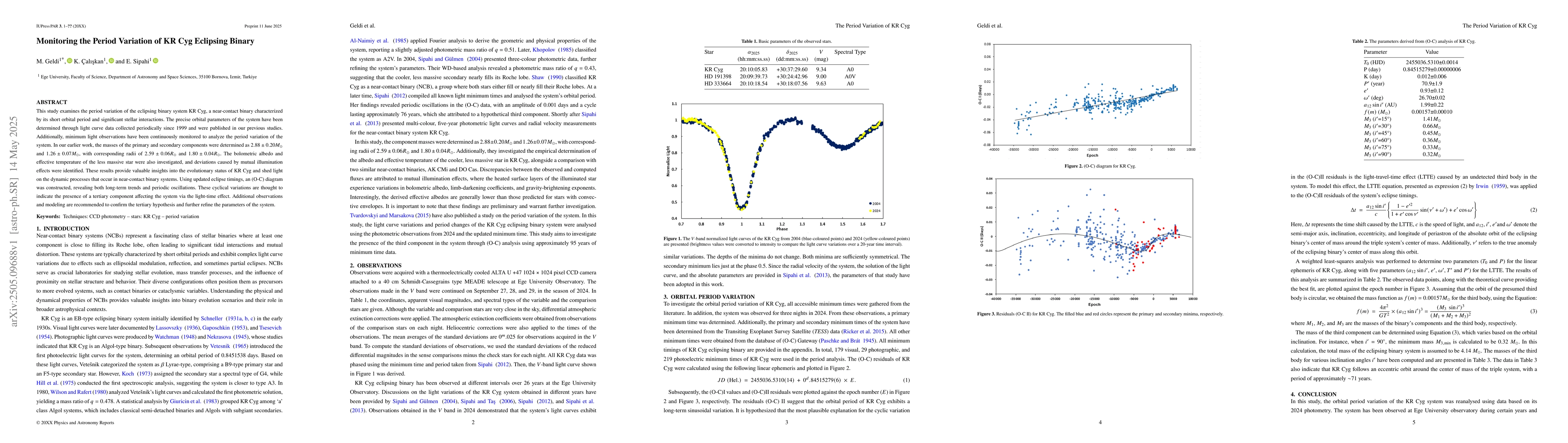 This work distinguishes itself by identifying periodic oscillations in the (O-C) diagram of KR Cyg, suggesting a tertiary component's influence, which requires further investigation.