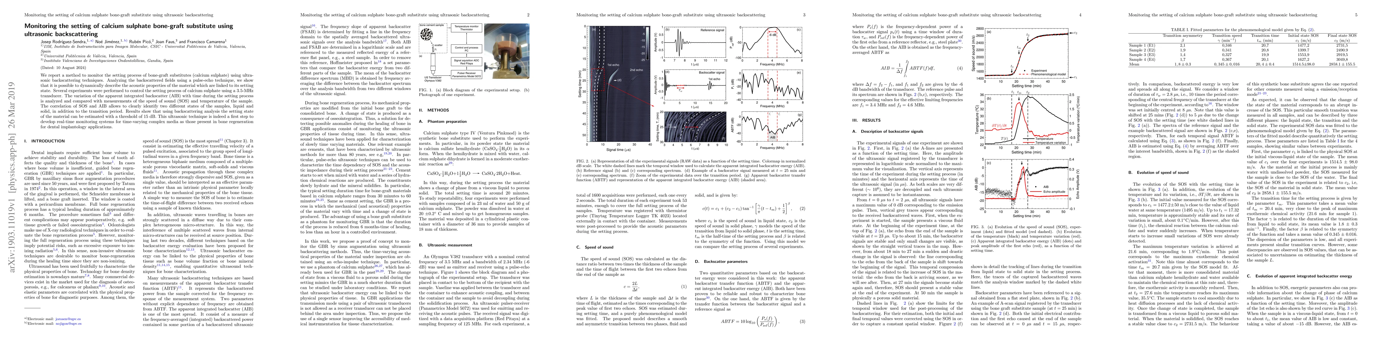 This study presents a new approach to characterizing the setting of calcium sulphate bone graft substitutes using ultrasound-based techniques.