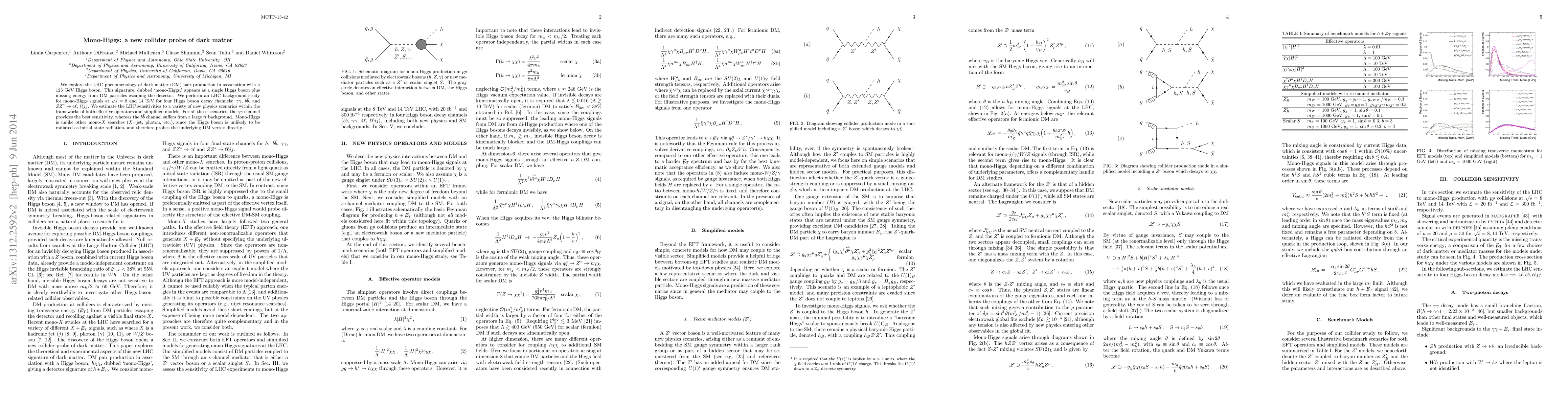 This research investigates the 'mono-Higgs' signature at the LHC, where dark matter particles pair production is associated with a 125 GeV Higgs boson, causing single Higgs boson and missing energy. The study finds that the gamma-gamma channel offers the best sensitivity for detecting various new physics scenarios related to dark matter, while the b-bar b channel faces significant tt background issues. Mono-Higgs differs from other mono-X searches as it directly probes the dark matter vertex without Higgs as initial state radiation.