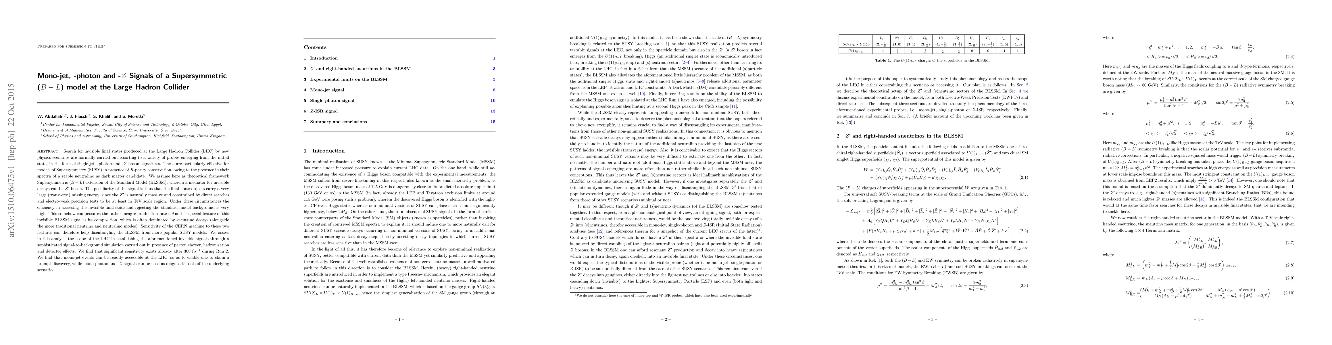 Search for invisible final states produced at the Large Hadron Collider (LHC) by new physics scenarios are normally carried out resorting to a variety of probes emerging from the initial state, in the form of single-jet, -photon and -$Z$ boson signatures. These are particularly effective for models of Supersymmetry (SUSY) in presence of $R$-parity conservation, owing to the presence in their spectra of a stable neutralino as dark matter candidate. We assume here as theoretical framework Supersymmetric ($B-L$) extension of the Standard Model (BLSSM), wherein a mediator for invisible decays can be $Z'$ boson. The peculiarity of the signal is thus that the final state objects carry a very large (transverse) missing energy, since the $Z'$ is naturally massive and constrained by direct searches and electro-weak precision tests to be at least in TeV scale region. Under these circumstances the efficiency in accessing the invisible final state and rejecting the standard model background is very high. This somehow compensates the rather meagre production rates. Another special feature of this invisible BLSSM signal is its composition, which is often dominated by sneutrino decays (alongside the more traditional neutrino and neutralino modes). Sensitivity of the CERN machine to these two features can therefore help disentangling the BLSSM from more popular SUSY models. We assess in this analysis the scope of the LHC in establishing the aforementioned invisible signals through a sophisticated signal-to-background simulation carried out in presence of parton shower, hadronisation and detector effects. We find that significant sensitivity exists already after 300 fb$^{-1}$ during Run 2. We find that mono-jet events can be readily accessible at the LHC, so as to enable one to claim a prompt discovery, while mono-photon and -$Z$ signals can be used as diagnostic tools of the underlying scenario.
