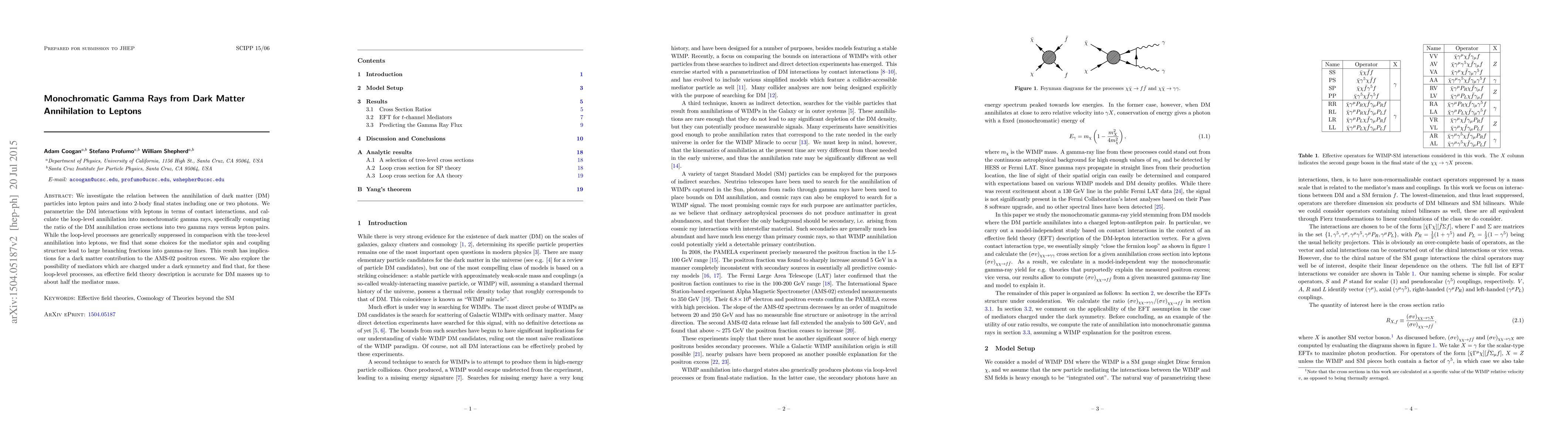 We investigate the relation between the annihilation of dark matter (DM) particles into lepton pairs and into 2-body final states including one or two photons. We parametrize the DM interactions with leptons in terms of contact interactions, and calculate the loop-level annihilation into monochromatic gamma rays, specifically computing the ratio of the DM annihilation cross sections into two gamma rays versus lepton pairs. While the loop-level processes are generically suppressed in comparison with the tree-level annihilation into leptons, we find that some choices for the mediator spin and coupling structure lead to large branching fractions into gamma-ray lines. This result has implications for a dark matter contribution to the AMS-02 positron excess. We also explore the possibility of mediators which are charged under a dark symmetry and find that, for these loop-level processes, an effective field theory description is accurate for DM masses up to about half the mediator mass.