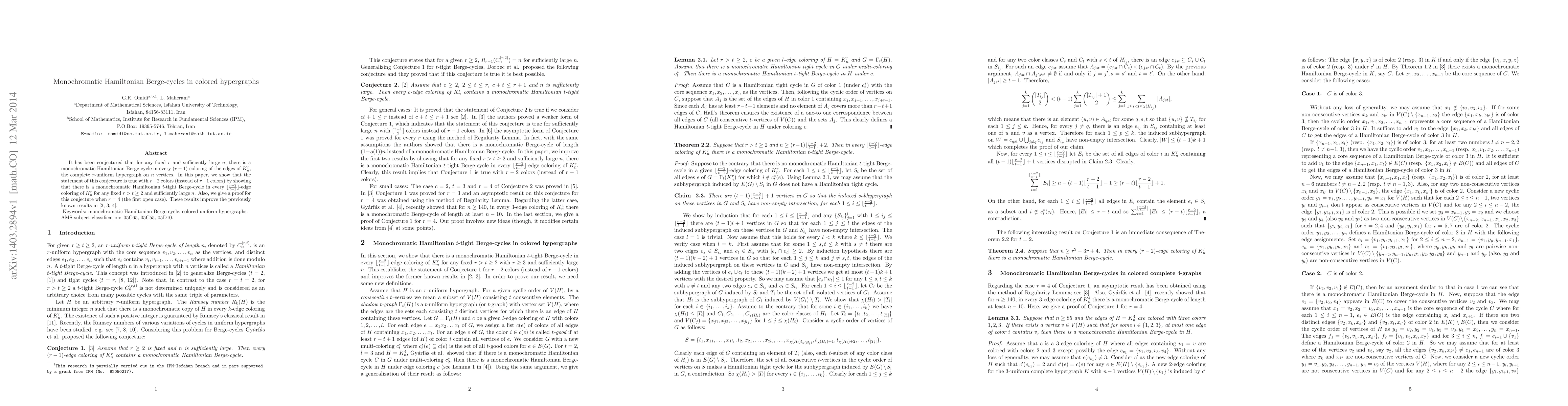 Researchers prove that every colored hypergraph on n vertices has a monochromatic Hamiltonian Berge-cycle with r-2 colors, improving previous results in graph theory.