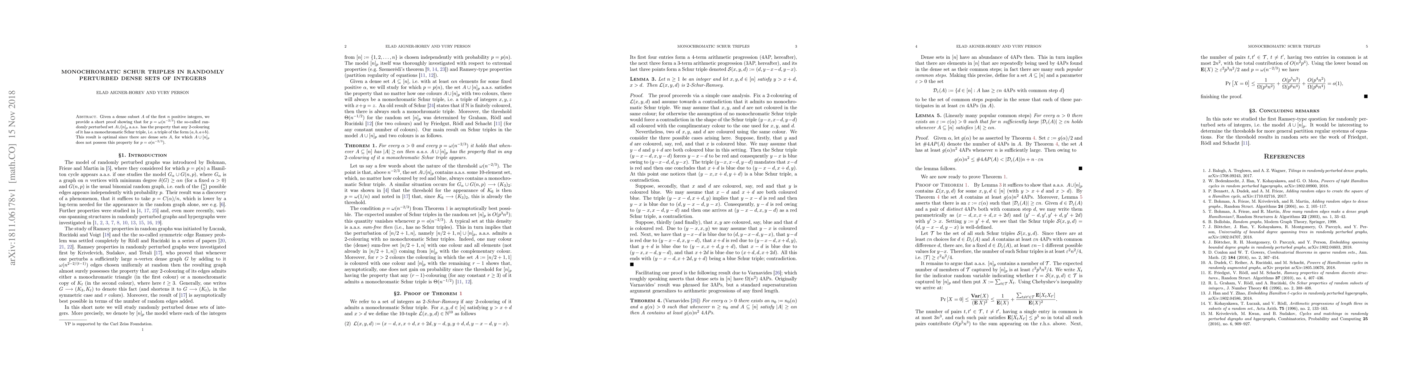A dense set of integers with a specific level of randomness is guaranteed to have a monochromatic Schur triple under certain conditions, according to this research paper.