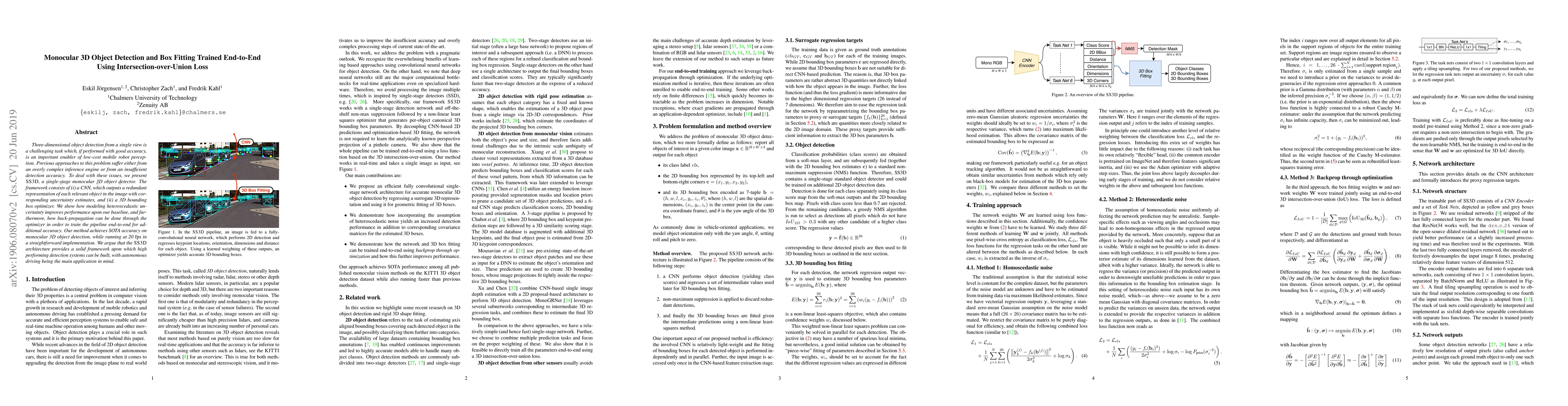 This paper introduces SS3D, a single-stage monocular 3D object detector that utilizes a CNN for initial object representation and a 3D box optimizer, trained end-to-end with an Intersection-over-Union loss for improved accuracy, achieving state-of-the-art results for low-cost mobile robot perception.