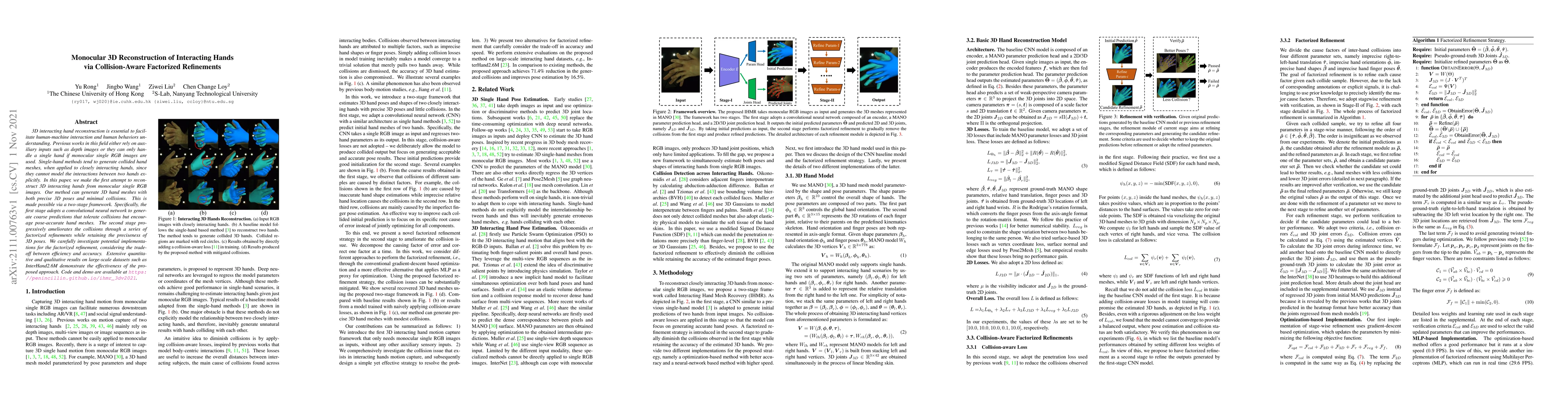 This paper proposes a two-stage framework for reconstructing 3D interacting hands from monocular RGB images, generating precise 3D poses with minimal collisions. The method uses a CNN for initial coarse predictions and refines them iteratively to correct collisions while preserving pose accuracy.