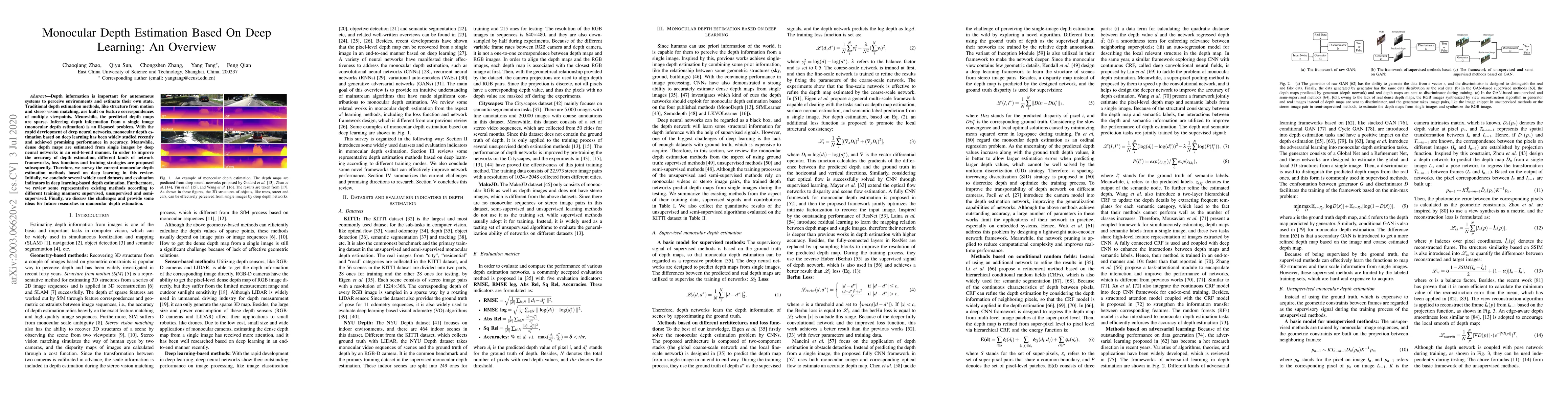 The paper provides an overview of monocular depth estimation methods based on deep learning, covering supervised, unsupervised, and semi-supervised learning approaches. It discusses various network frameworks, loss functions, and training strategies used in these methods.