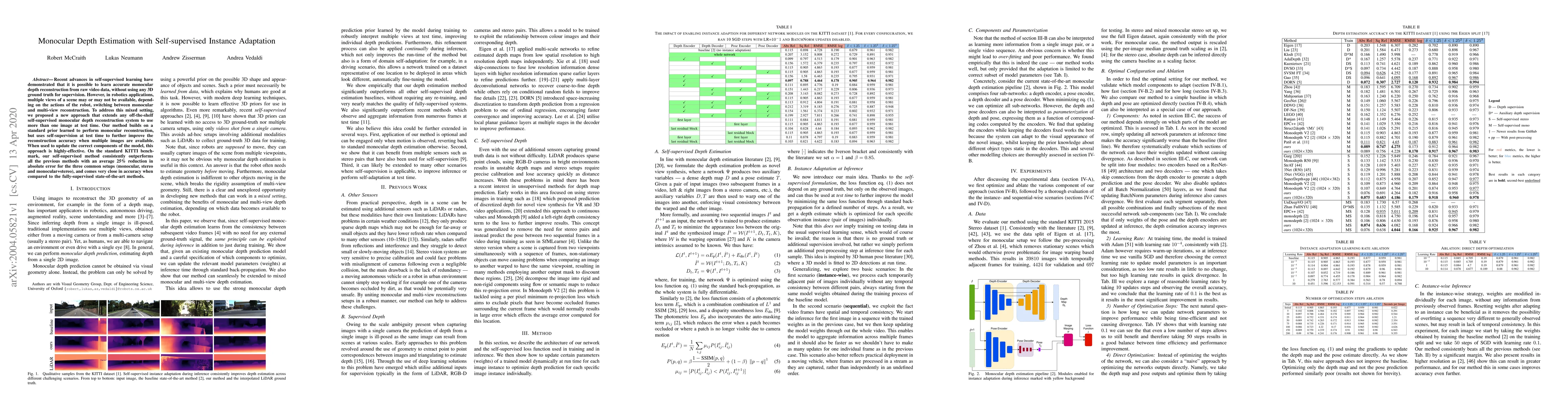 Recent advances in self-supervised learning havedemonstrated that it is possible to learn accurate monoculardepth reconstruction from raw video data, without using any 3Dground truth for supervision. However, in robotics applications,multiple views of a scene may or may not be available, depend-ing on the actions of the robot, switching between monocularand multi-view reconstruction. To address this mixed setting,we proposed a new approach that extends any off-the-shelfself-supervised monocular depth reconstruction system to usemore than one image at test time. Our method builds on astandard prior learned to perform monocular reconstruction,but uses self-supervision at test time to further improve thereconstruction accuracy when multiple images are available.When used to update the correct components of the model, thisapproach is highly-effective. On the standard KITTI bench-mark, our self-supervised method consistently outperformsall the previous methods with an average 25% reduction inabsolute error for the three common setups (monocular, stereoand monocular+stereo), and comes very close in accuracy whencompared to the fully-supervised state-of-the-art methods.