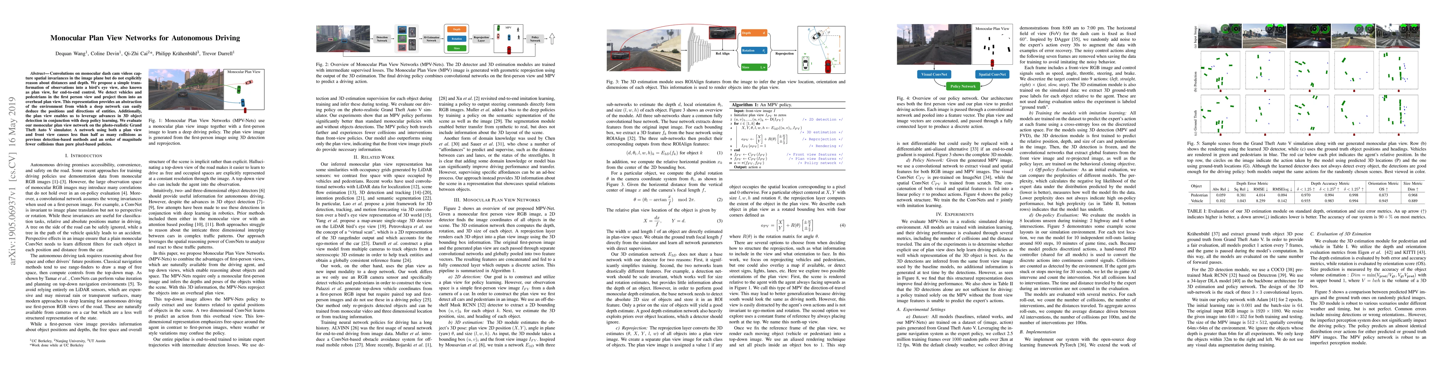 Researchers propose a new approach for autonomous driving using monocular plan view networks that detect vehicles and pedestrians in a first person view and project them into an overhead plan view to enable easy depth reasoning and reduce collisions.